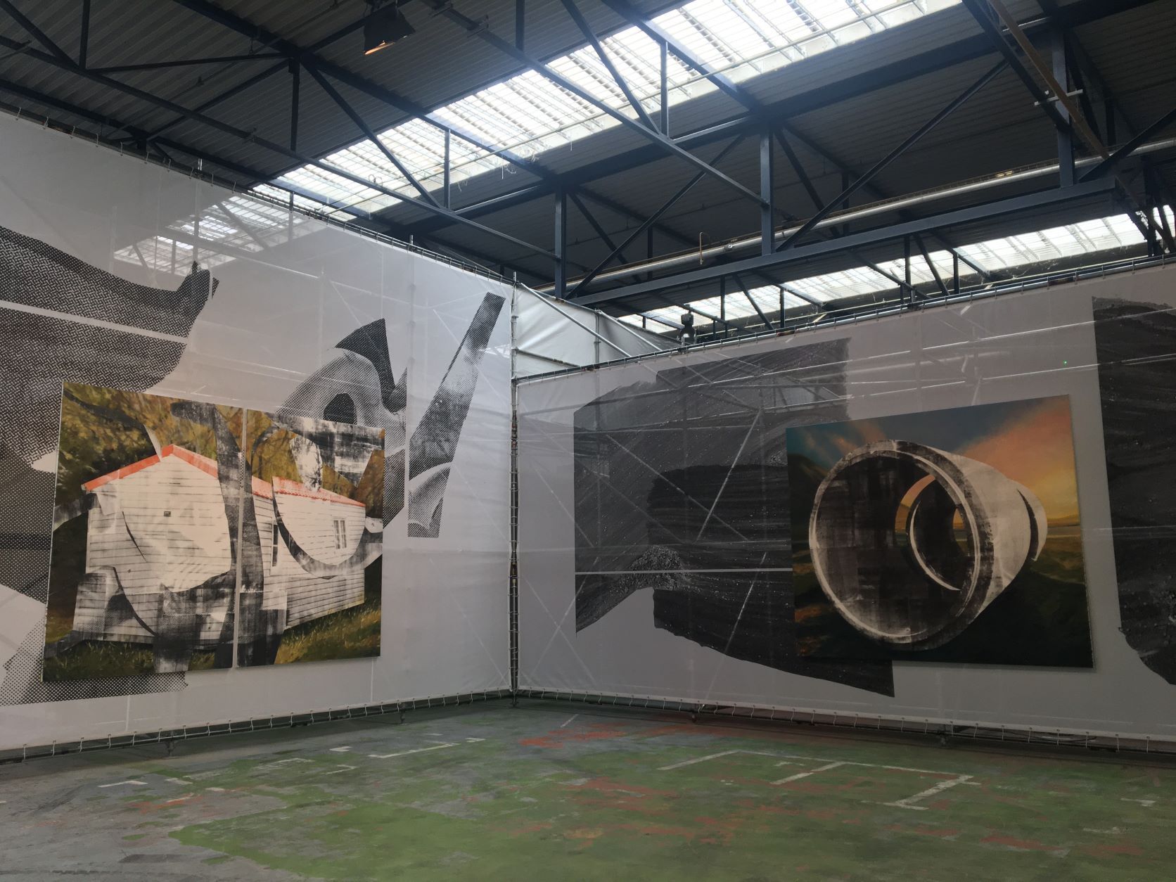Les commissaires Sam Bardaouil et Till Fellrath à l’ouverture de la Biennale de Lyon aux usines Fagor.