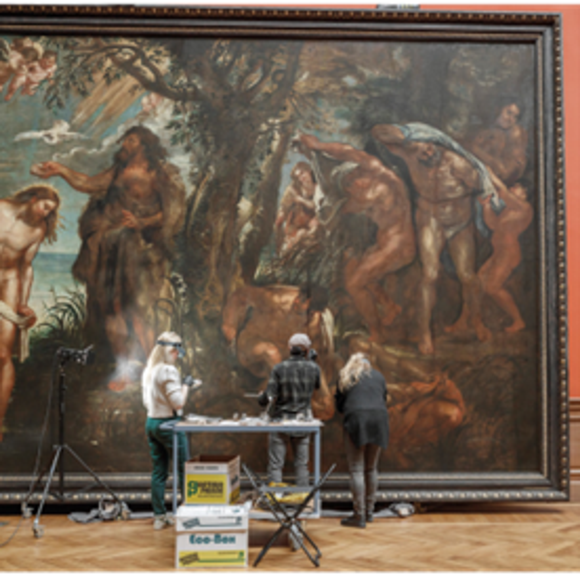 Installation du tableau de Pierre Paul Rubens Madone intronisée avec enfants, entourée de saints, vers 1627-1628, huile sur toile. © Karin Borghouts