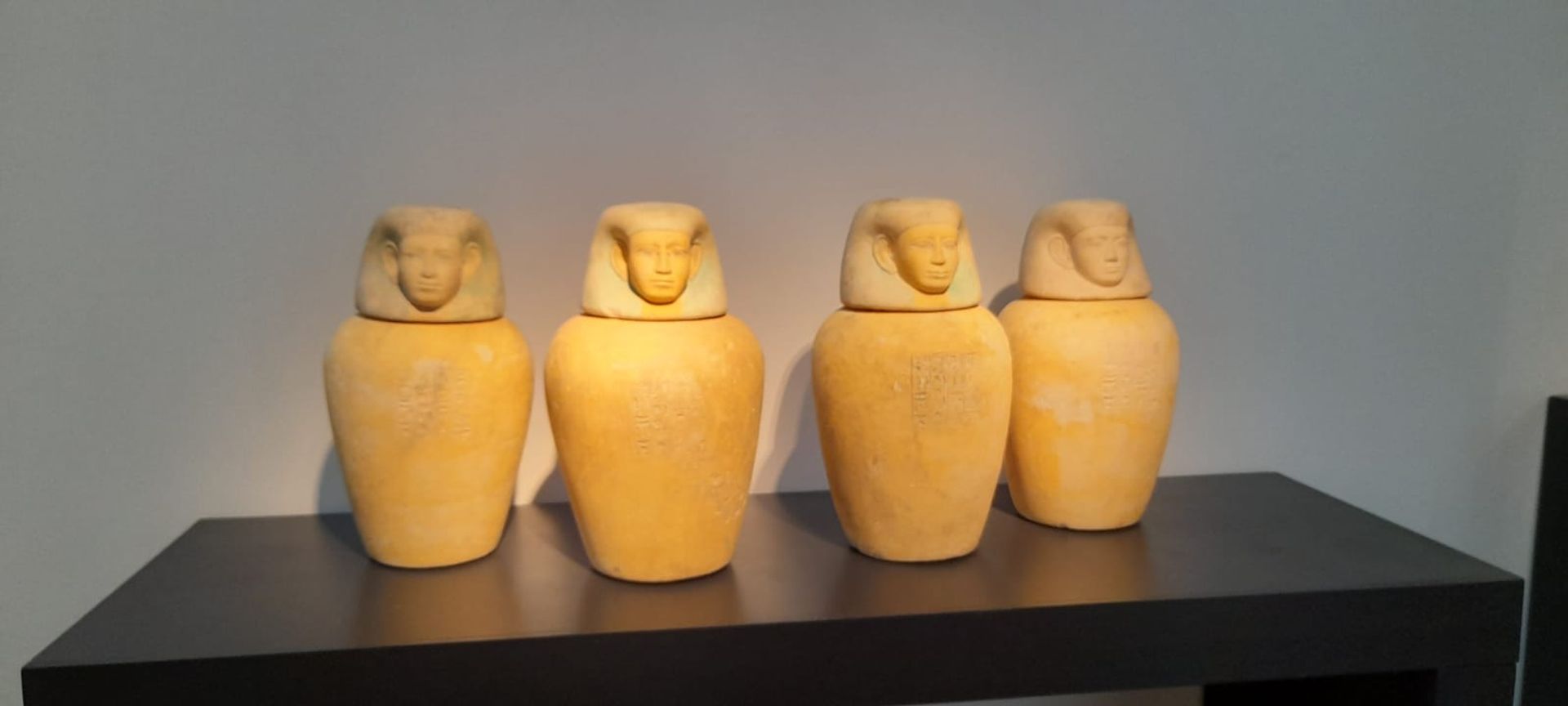Ensemble de quatre vases canopes, galerie Eberwein. Photo : D.R.