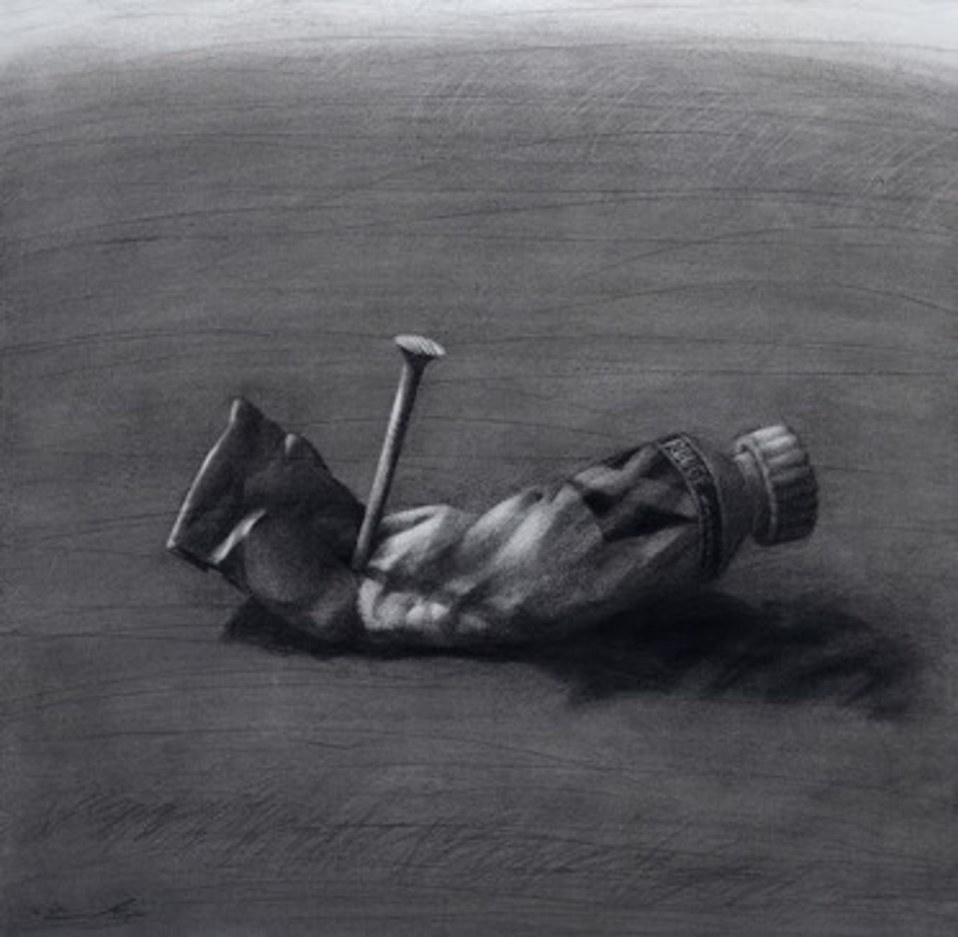 Youssef Abdelke, Le tube de peinture, fusain sur papier, 101 x 102 cm. Galerie Mark Hachem. Photo : galerie Mark Hachem