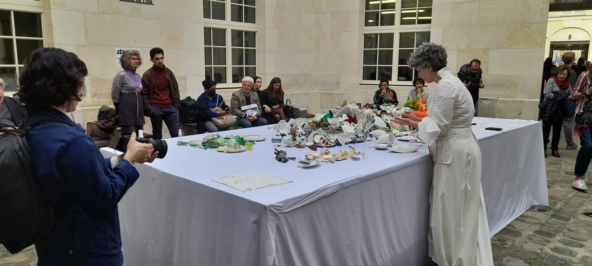 En s’installant cette année à la Monnaie de Paris, au cœur de la capitale, face à la Seine, Asia Now gagne en visibilité mais aussi en volume, avec 75 galeries participant à cette édition. Ce lieu historique apporte un nouveau souffle à la manifestation fondée et dirigée par Alexandra Fain. Le signe le plus visible de ce changement est certainement la série d’installations monumentales rythmant notamment les différentes cours, les passages et les escaliers, du drapeau noir de Golnaz Payani à la table d’objets brisés de Neda Razavipour, assortie de performances. Le tout sous la houlette de Kathy Alliou, directrice artistique de la foire et directrice du département de Œuvres aux Beaux-Arts de Paris. Il faut d’ailleurs au visiteur un peu de temps pour apprivoiser cette édition foisonnante et éclatée sur ce site de plus d’un hectare qui s’apparente à un village, fureter partout pour ne pas oublier l’une des tentes qui abritent une partie de la foire. Parmi les améliorations à apporter l’an prochain figurent une meilleure signalétique, ainsi que l’habillage des cloisons, un peu trop brut dans certaines tentes et ne mettant pas en valeur les œuvres.