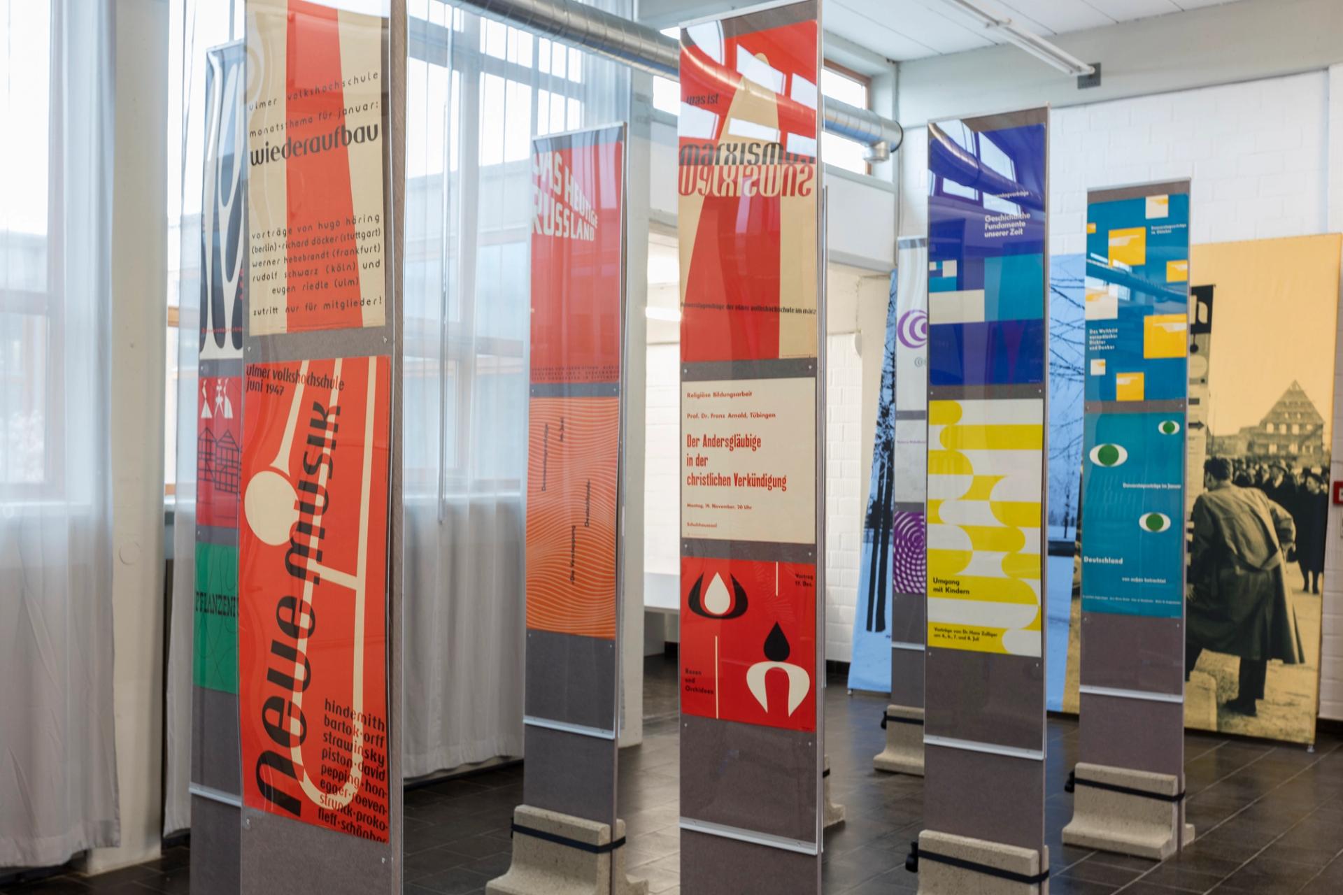 Vue de l’exposition « Otl Aicher, 100 Jahre, 100 Plakate » au HfG-Archiv Museum Ulm. © Oleg Kuchar, HfG-Archiv Museum Ulm