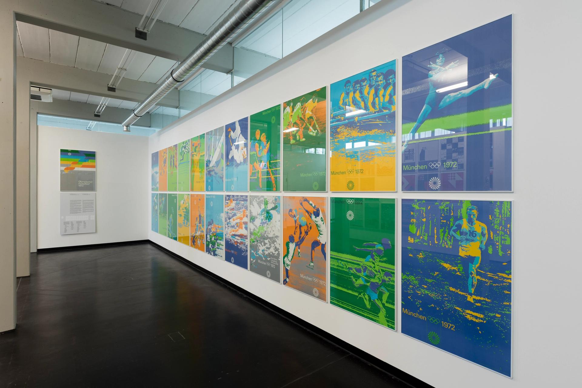 Son grand œuvre, l’identité visuelle des JO de Munich, s’arroge évidemment le devant de la scénographie. Otl Aicher s’est mis à plancher sur le sujet dès les années 1967-1968. À l’époque, le souvenir des Jeux de Berlin de 1936 de triste mémoire est encore sensible et, on le sait peu, le cahier des charges que se verra confier Aicher est pour le moins ambitieux. Seul impératif : que rien ne rappelle la machine de propagande du IIIe Reich. Ces Jeux de Munich se devaient de « créer une atmosphère libre de préjugés ou de rivalités nationales, mais pleine d’ouverture, de tolérance et de gaieté ». Concrètement, il fallait montrer que le pays pouvait se présenter comme une démocratie pacifiste.