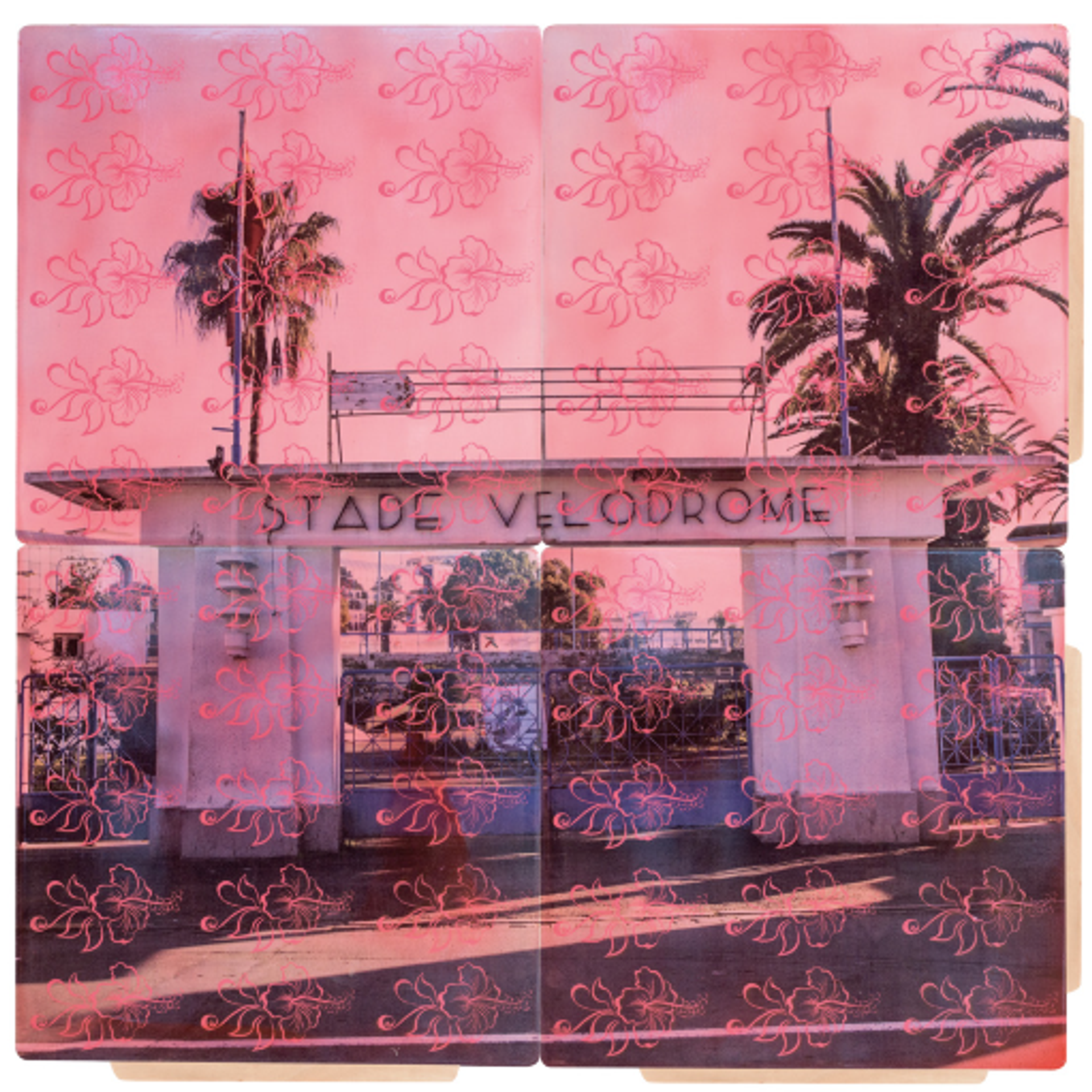 Mohamed Fariji, Vélodrome, 2016, photographie sur bois, sérigraphie. Courtesy L’Atelier 21, Casablanca