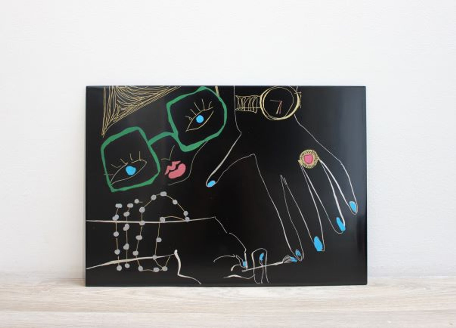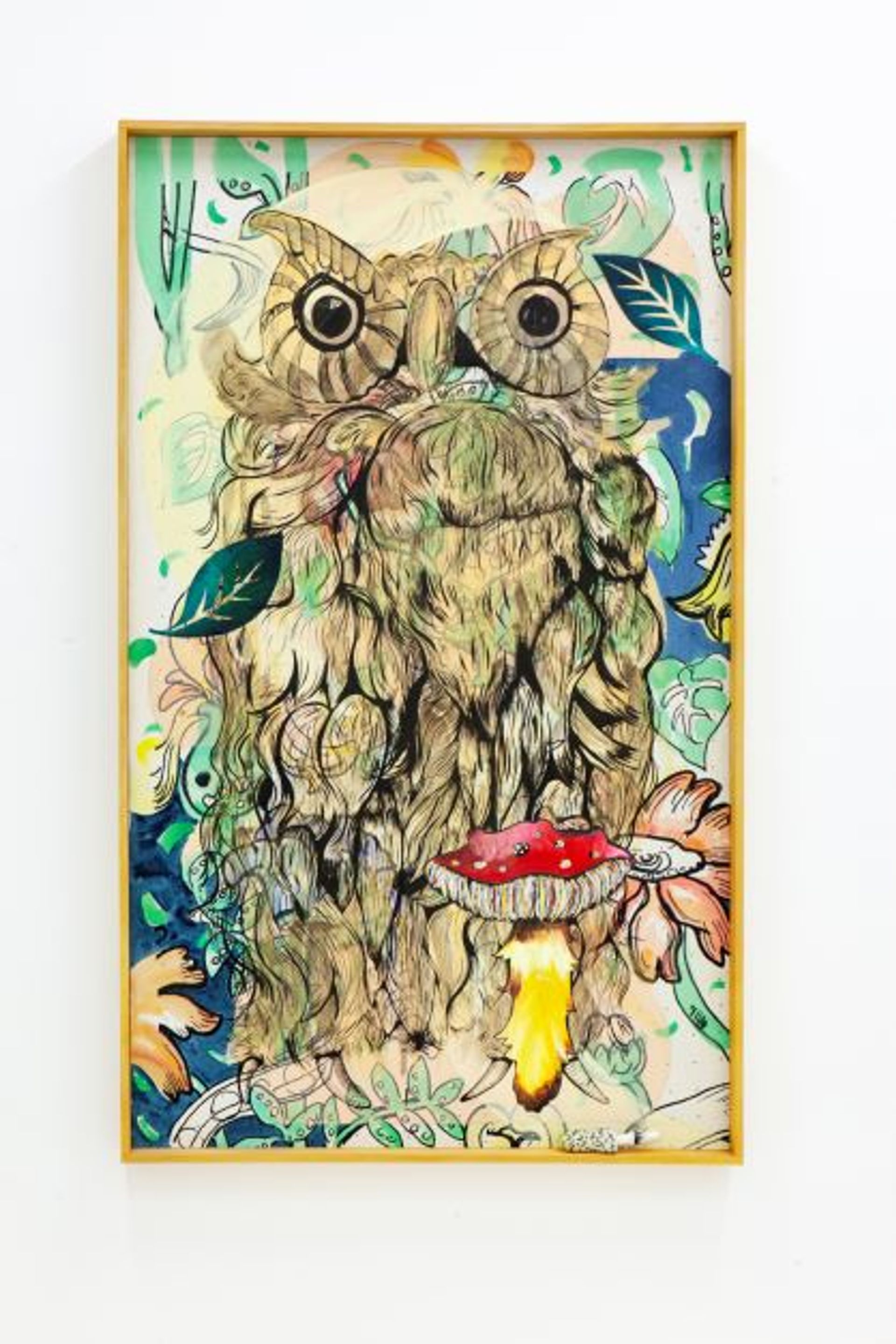 Alexandre & Florentine Lamarche-Ovize, Notes (owl), 2022, technique mixte sur tissu imprimé/mixed media on printed textile. © Alexandre & Florentine Lamarche-Ovize et Laurent Godin