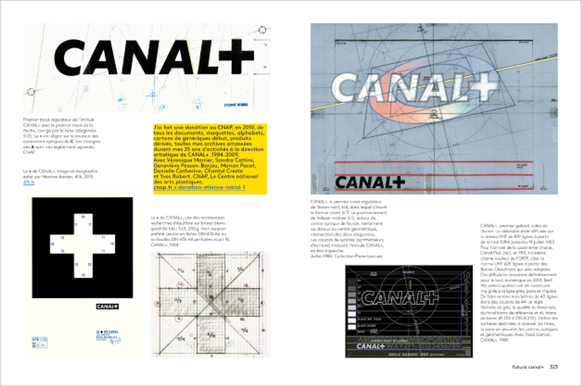 Avant le lancement de Canal +, pour que nos expérimentations restent secrètes, nous nous étions installés à Londres. C’est là que nous avons conçu tous les « habillages » de la chaîne. Le vocable « habillage télévisuel » est une métaphore. J’ai dit à Pierre Lescure : « C’est comme un costume, je te dessine trois vestes, trois pantalons, trois chemises et trois cravates, et tu joues avec eux autant que tu veux, en les intercalant à l’envi. » Nous avons travaillé avec les premières palettes graphiques et un logiciel nommé Mirage qui faisait apparaître ou disparaître les mots. À l’époque, sur les chaînes concurrentes, les couleurs étaient arbitraires et destructrices. À l’inverse, nous recherchions une forme d’élégance, d’où cette base en noir et blanc devenue le faire-valoir de la couleur et, plus globalement, de la chaîne.