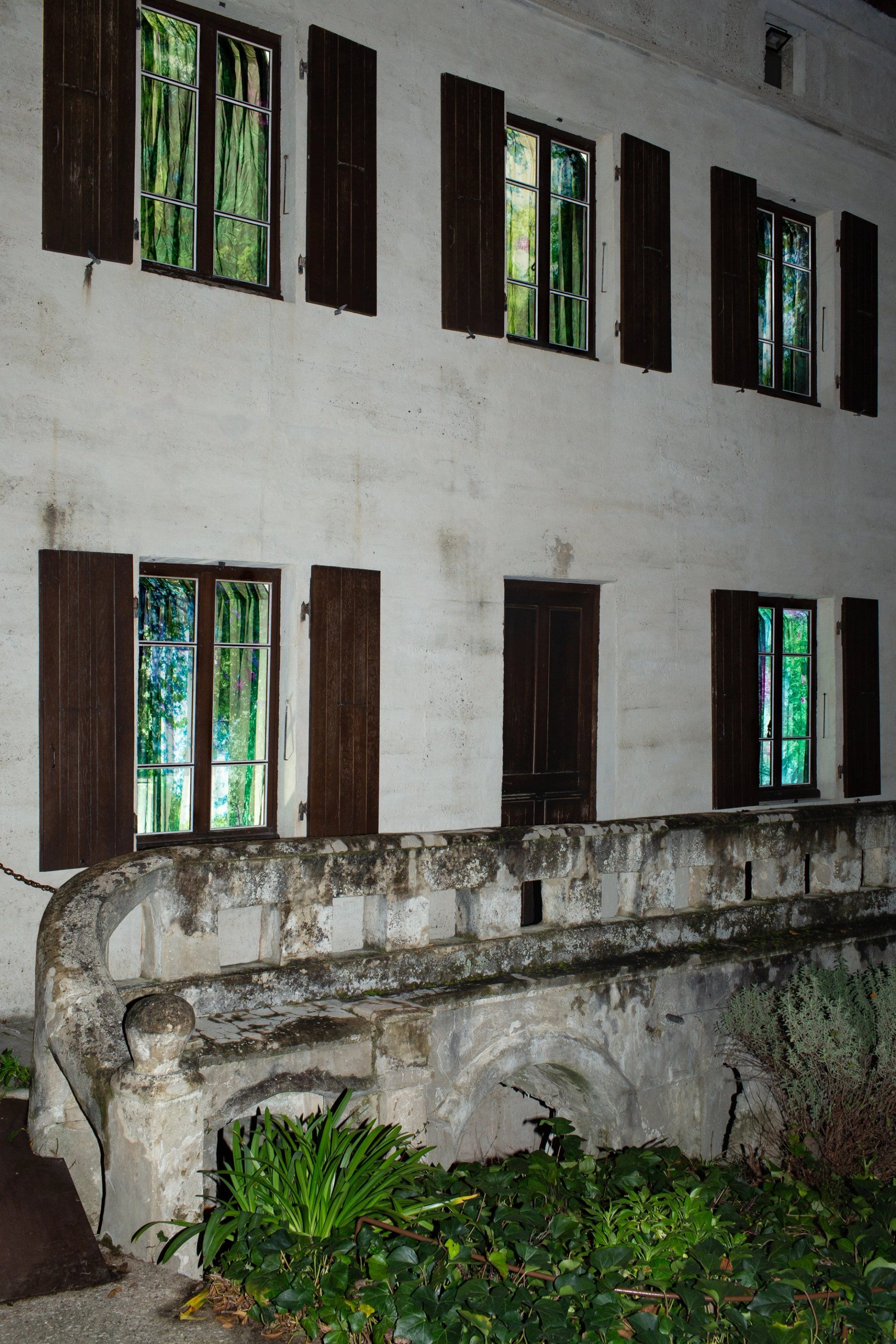 Le Palais idéal du facteur Cheval, à Hauterives, dans la Drôme, compte déjà une Maison blanche, sculpture-phare d’un micro-musée de l’architecture mondiale ciselé en son flanc Ouest. Il arbore désormais, le temps d’un hiver, son parfait contraire : une masure couleur charbon signée de l’artiste franco-américaine Martine Aballéa. Intitulée La Maison lointaine et développée spécifiquement pour le lieu – une première ! –, l’œuvre se compose de deux volets. D’un côté, la nature se loge dans l’architecture, en l’occurrence les fenêtres de l’ancienne demeure de l’employé des Postes. L’artiste y a accroché des rideaux imprimés d’images photographiques de paysages luxuriants, colorisés à souhait – Paysages lumineux, Le Jardin d’Auguste Comte – et visibles depuis l’extérieur. Lesdites fenêtres, proches de l’atomisation tant la végétation les envahit, sont ici métaphores de l’inspiration de l’illustre constructeur : cette campagne vallonnée qu’il sillonne du matin au soir pour livrer le courrier et qui fournira pierres et galets pour son antre de l’idéalité.