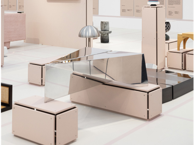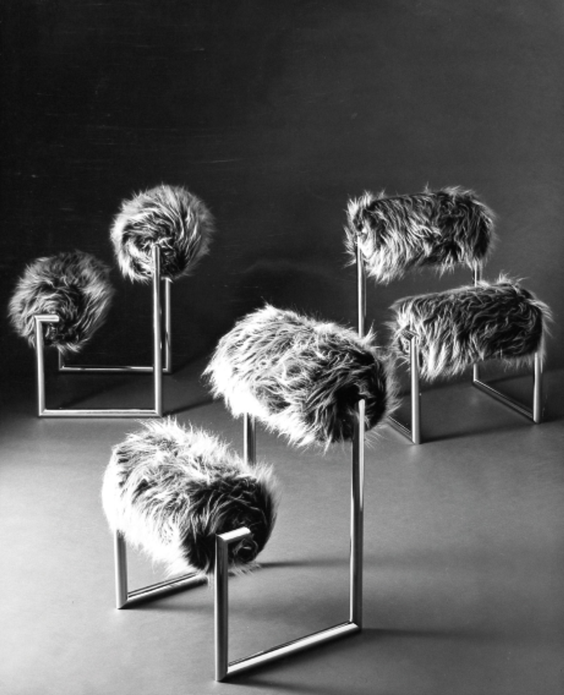 Ses pièces nous regardent autant que nous les manipulons, nous envoûtent autant que nous les enveloppons. « J’ai cherché la dématérialisation de l’objet à travers la création de fausses perspectives, de telle sorte que l’espace autour de la personne qui regarde s’identifie à l’objet lui-même », disait-elle. Design et architecture n’ont ainsi plus d’autre sens que de plonger le public dans une forme d’extase contem-plative mêlée à un fonctionnalisme délicat. Son geste réalise la gageure d’une synthèse entre James Turrell, Julio Le Parc et Charlotte Perriand, soit entre l’intensité presque mystique d’une beauté diaphane et la rigueur formelle d’un objet du quotidien (table, fauteuil, lampadaire, miroir…). L’exposition, immersive, invite à traverser ses « environnements » – des intérieurs pensés dans leur totalité décorative, spatiale et sensorielle. Plusieurs d’entre eux, démantelés pour la plupart, ont été reconstitués. Dans chaque pièce, remplie de miroirs, de néons, d’objets en aluminium et en verre, on voudrait s’installer et se laisser envahir par cette ambiance tant cinématographique que cinétique. Comme si l’on se transposait dans un film de Jean-Pierre Melville ou une sculpture de Julio Le Parc.