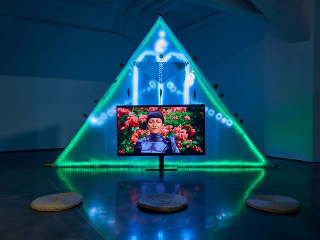 Cédric Fauq s’est souvenu que, dès l’Exposition universelle de 1893 à Chicago, qui accueillait la première grande roue de l’histoire, un zoo humain attirait à proximité les badauds, excités par la monstration des freaks autant que par la prouesse vertigineuse des manèges. Double vertige, double malaise. S’élever physiquement vers le ciel, s’abaisser moralement à rire des monstres ; cette pulsation antagoniste du corps traduit l’ambivalence des pulsions humaines. La fête foraine est le réceptacle de cette tension, et l’exposition s’en fait l’écho assourdissant. Après avoir observé, en arrivant à Bordeaux, qu’une fête foraine s’installait chaque année entre mars et octobre place des Quinconces, juste à côté du CAPC, Cédric Fauq a cherché à amplifier l’écho des manèges à l’intérieur même du centre d’art. Avec ce pont construit entre l’art et la vie, il salue les procédés par lesquels la scène artistique contemporaine puise dans cet imaginaire : un paysage, une ambiance, une histoire dont s’emparent tous les médiums (installations, dessins, vidéos, sculptures, peintures, performances, œuvres sonores…). Pour Cédric Fauq, « “Barbe à papa” est la tentative de penser l’exposition comme mise en scène d’une “atmosphère”». Tout l’enjeu étant de qualifier cette atmosphère – joyeuse, macabre, solaire, mélancolique –, l’exposition part dans tous les sens, pour électrifier précisément nos sens. Et l’on se perd un peu parfois dans les grandes largeurs de la nef où sont rassemblées, dans un bazar apparent, les œuvres de quarante artistes, dont un grand nombre dit « émergents» (Julie Villard & Simon Brossard, Thomas Liu Le Lann, Alfredo Aceto, Gregory Kalliche, Julien Ceccaldi…).