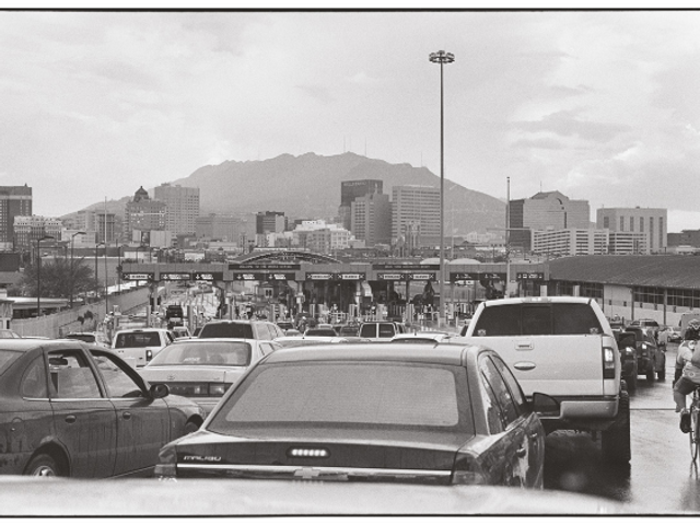 La succession de paysages de montagne et de désert, de villes et de villages, d’infrastructures de circulation et de commerce, mais aussi – et peut-être surtout – de contrôle et de surveillance se traduit par une enquête d’une ampleur presque épique. Parmi les 500 images formant le vaste projet Al río/ To the River (2021), le musée d’Art moderne de la Ville de Paris retient plus de 300 tirages, pour la plupart en noir et blanc. Photographe autodidacte attachée à la technique argentique, Zoe Leonard poursuit son entreprise de résistance face à la domination et l’obsolescence. Son regard, toujours mouvant lui aussi, se situe de part et d’autre du fleuve, refuse l’univocité et la déshumanisation, faisant apercevoir – quoi que le plus souvent à distance – les communautés d’habitants, de travailleurs et de migrants qui occupent l’immense zone frontalière conçue comme un territoire liminaire, un troisième lieu.