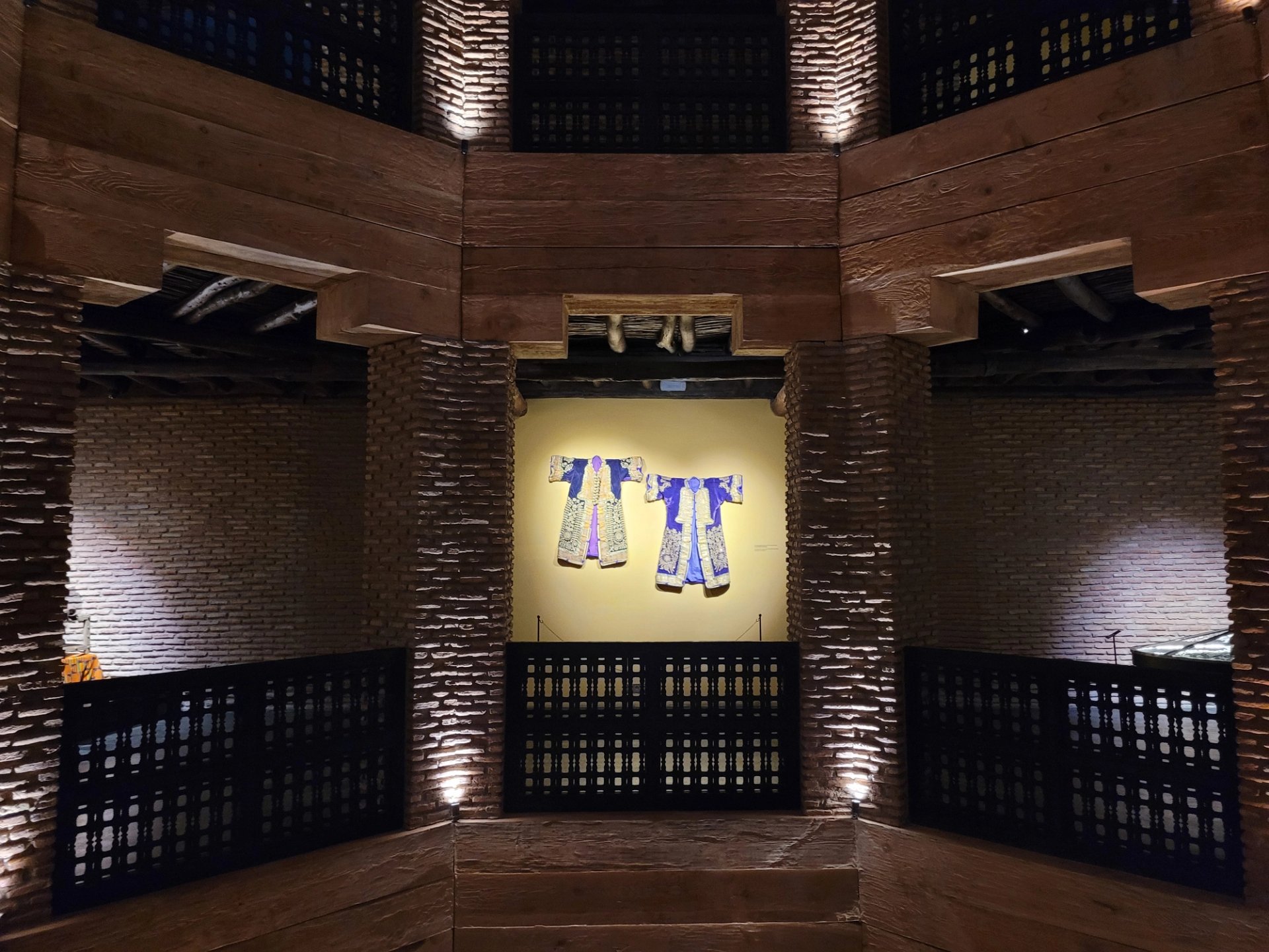 Idéalement installé dans un pays très lié à l’art du bijou, le musée laisse entière liberté au visiteur de butiner de vitrine en vitrine, de scanner ou non les QR codes informatifs. Pour l’accompagner dans leur projet, le couple de collectionneurs a fait appel au spécialiste de la parure Alaa Sagid. Dans une scénographie légère et contemporaine, les parures sont posées en abondance sur des lits de cailloux sombres, tels des trésors découverts sur le lit d’une rivière asséchée. De discrets cartels guident de région en région : Mauritanie, Anatolie, Daguestan, Balkans, Chine, Russie, Maroc… Dessinant une « géographie des aires civilisationnelles » davantage qu’une « géographie des frontières » trop restrictive et artificielle, l’exposition permanente invite à redécouvrir les techniques du métal telles le niellé, l’émail ou le filigrane et à suivre en creux, de rubis en agate et de turquoise en corail, la route des échanges et celle des caravanes… Si la collection est centrée sur la parure, l’accrochage est complété par d’autres coups de cœur du couple : vêtements traditionnels du XIXe siècle, tentures brodées d’Inde du Nord aux traces de broderie en fil d’or, tenues de Samouraï ou encore deux pierres tombales sculptées chinoises Han datant de 200 avant J.-C. Grâce à cette présentation étincelante, Paolo Gallone « espère bien susciter des vocations de collectionneurs », conclut-il.