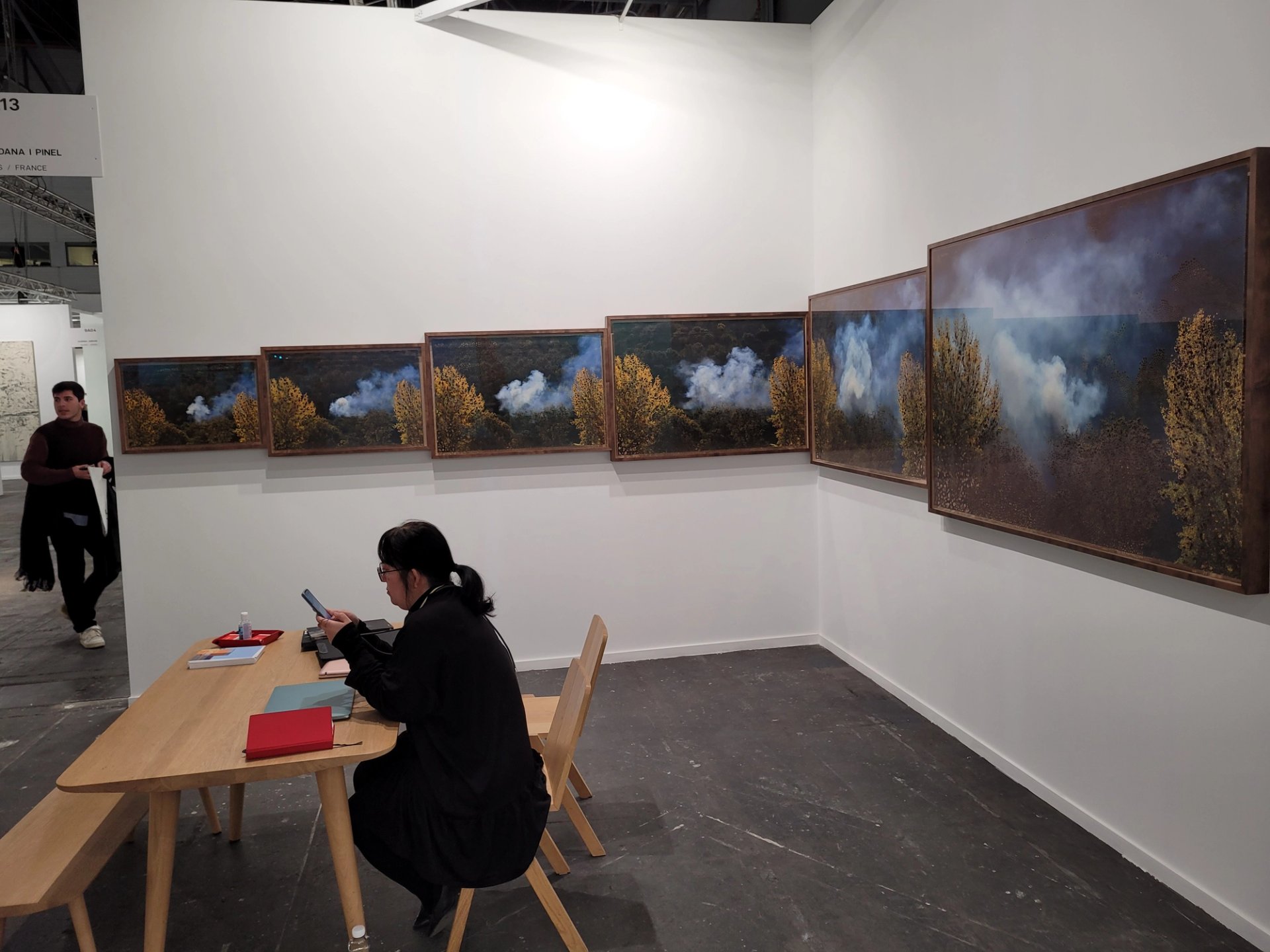 Ce dernier, qui consacre un très beau focus à Sylvie Fleury, est revenu en 2022 après une longue pause. « Exposer ici nous permet de nourrir les contacts avec l’Amérique du Sud, sans devoir aller participer à une foire sur place, ou même à Miami. C’est aussi meilleur pour l’environnement ! », confie-t-il. Un constat observé par de nombreux autres exposants à qui nous avons parlé. Et de poursuivre : « Arco est pour moi la deuxième meilleure foire d’Europe continentale, derrière Art Basel et Paris + par Art Basel ». La galerie a cédé de nombreuses pièces à des clients d’Amérique du Sud, mais aussi des Français et des Allemands. « Nous avons rencontré des Sud-Américains que je voyais autrefois là-bas, explique Juan Carlos Bendana-Pinel. Sans compter des ventes à une grosse collection de Hambourg, en Allemagne, à une Norvégienne assez jeune, à deux Américains… » Le galeriste s’est ainsi dessaisi d’œuvres notamment de Sandra Vásquez de la Horra et Miguel Rothschild, dont deux « ciels » se trouvent dans la collection de la Fondation Carmignac. Une spectaculaire installation photographique de l’artiste déployée sur deux murs d’angle attendait preneur le 23 février.