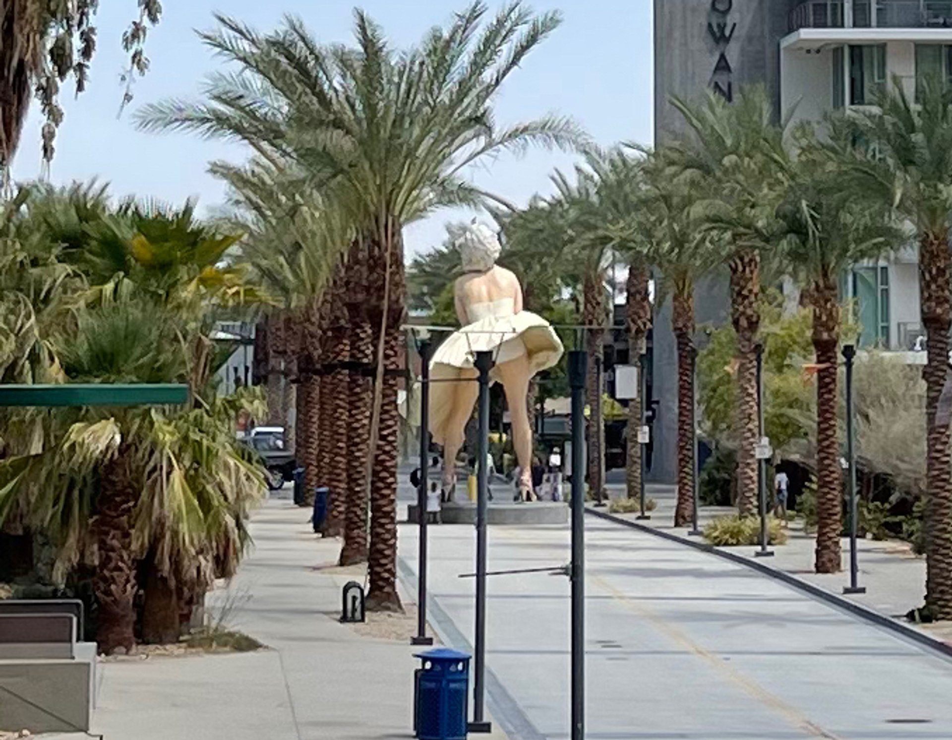 Seward Johnson, Forever Marilyn, 2011, installée au centre de Palm Spring, en Californie. Vue de dos. Photo : Philippe Régnier