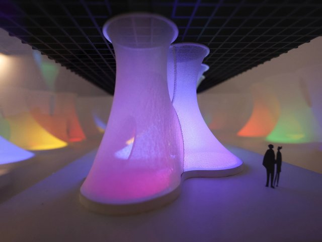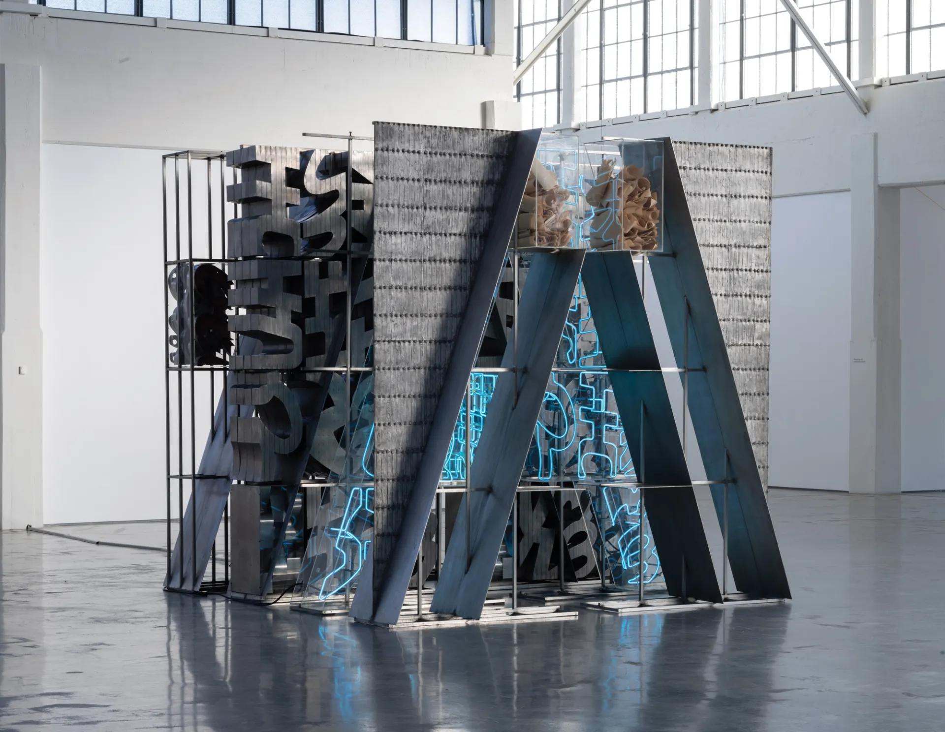 La pièce maîtresse de l’exposition, une sculpture intitulée The Gates to Times Square (1964-1966), permet d’aborder cette période de formation. D’une hauteur et d’une largeur de trois mètres, elle comprend des couches d’aluminium, d’acier et de néon enrobé de plexiglas, présentant des formes qui évoquent des écritures, mais qui ne sont pas pour autant lisibles. « Elle explore la dimensionnalité des fragments de signalisation et les associe au néon, explique Megan Holly Witko. Il s’agit de son opus magnum absolu, qui sert de fil conducteur à l’exposition. Une grande partie de son travail mène à ce moment, puis en découle. »
