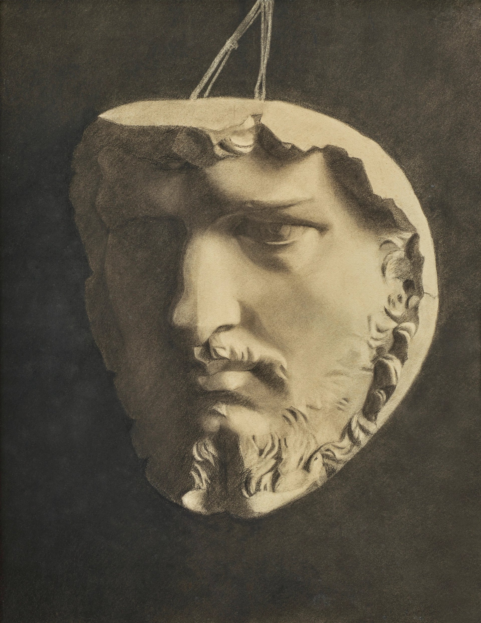 Hélène Andersen (École Danoise, 1er quart du XXe siècle), Étude de masque en plâtre, fusain. Courtesy Didier Aaron & Cie