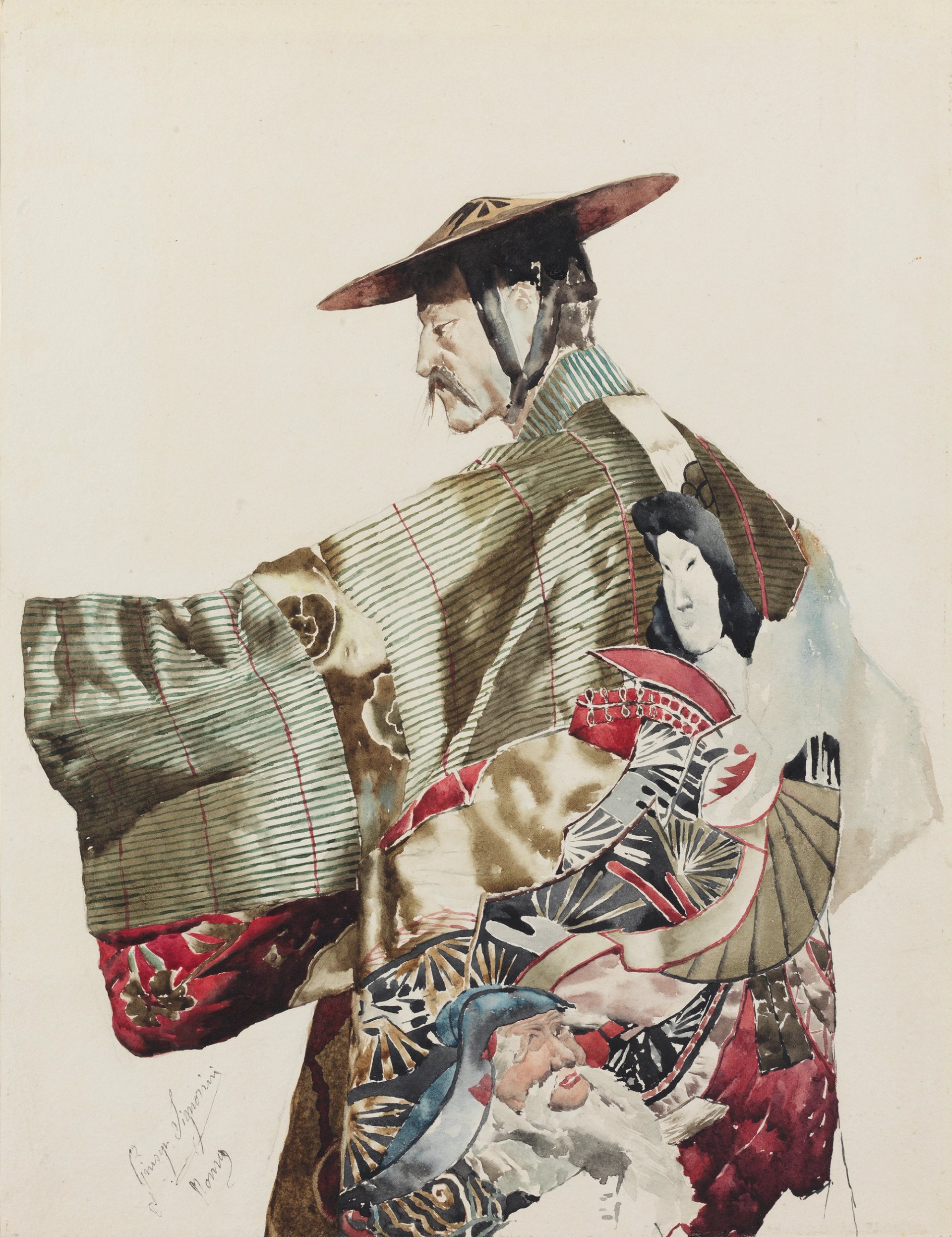 Giuseppe Signorini (1857-1932), Homme en costume japonais, aquarelle sur traces de graphite sur papier. Courtesy W.M Brady & Co