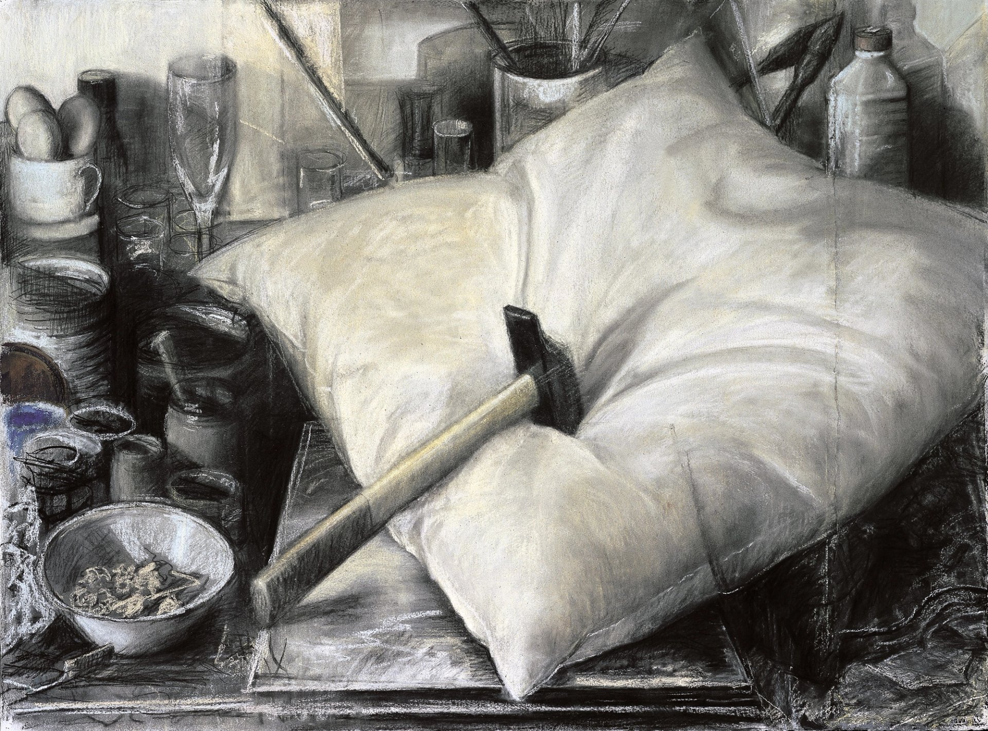 Ra’anan Levy, Marteau sur l’oreiller II, 2000, pastel, crayon et fusain sur papier. Courtesy Galerie Dina Vierny
