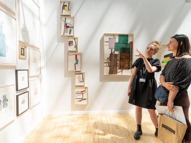 Christine Phal, cofondatrice de Drawing Now, Suzanne Husky, artiste lauréate du Prix Drawing Now 2023 et Alain Gutharc, galerie Alain Gutharc. © Grégoire Avenel pour Say who