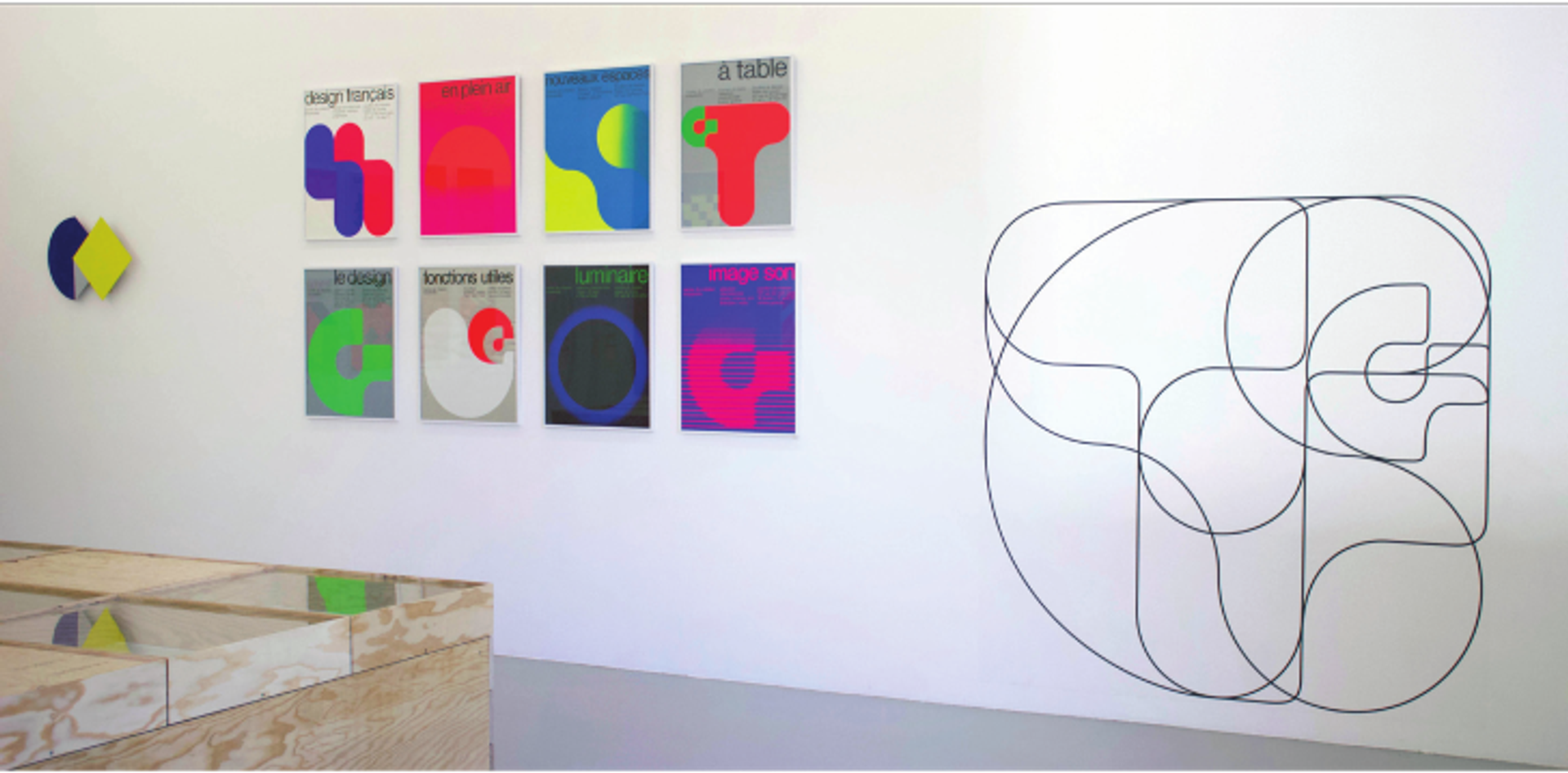 Vue de l’exposition « Jean Widmer. Du concret au quotidien » avec un ensemble d’affiches réalisées pour le Centre de création industrielle, Espace de l’Art Concret, Mouans-Sartoux, 2023. © eac et Centre Pompidou, MNAM-CCI. Photo D.R.