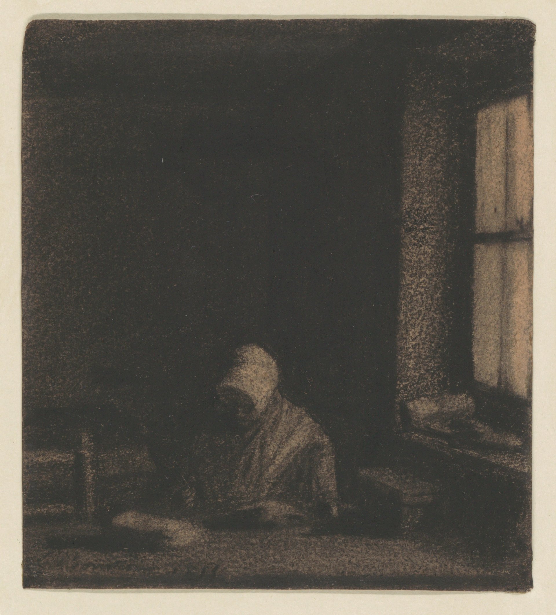 Léon Bonvin (1834-1866), Femme à l’ouvrage dans l’auberge à Vaugirard, 1858, pierre noire sur papier beige. Acquis de la Galerie Talabardon & Gautier, Paris. Courtesy Fondation Custodia, Collection Frits Lugt, inv. 2019-T.48