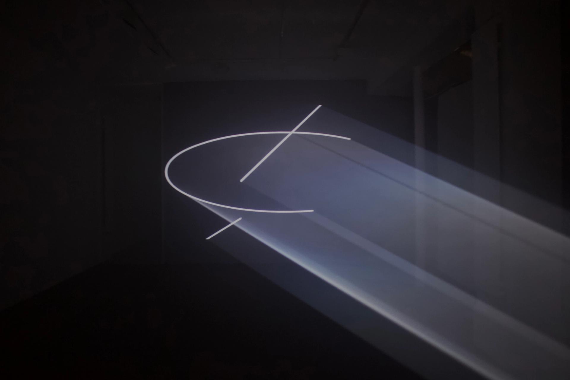 Anthony McCall, Raised Voices, 2022, animation numérique N/B, son (bande sonore de David Grubbs), cycle de 16 minutes. Photo : Célia Rozec. Courtesy : Anthony McCall et Galerie Martine Aboucaya