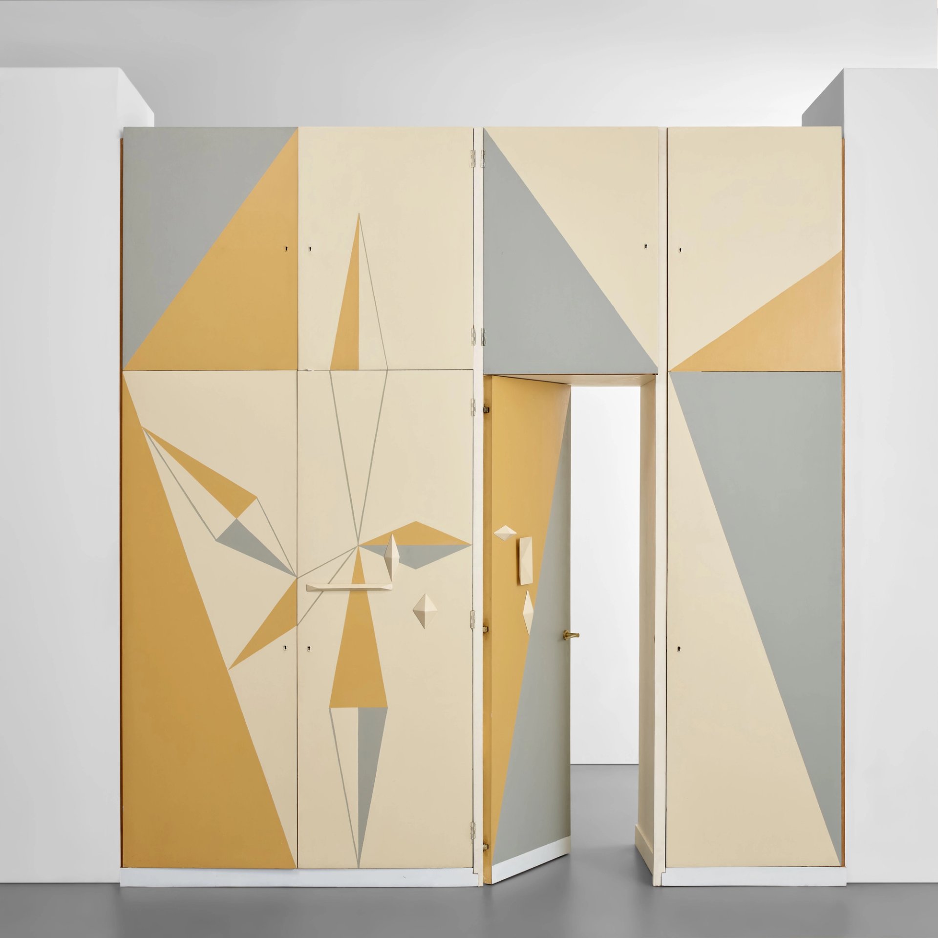 Gio Ponti, Armoire-dressing, 1955, frêne, laiton et miroir, 315 x 302 x 86 cm. Courtesy Phillips