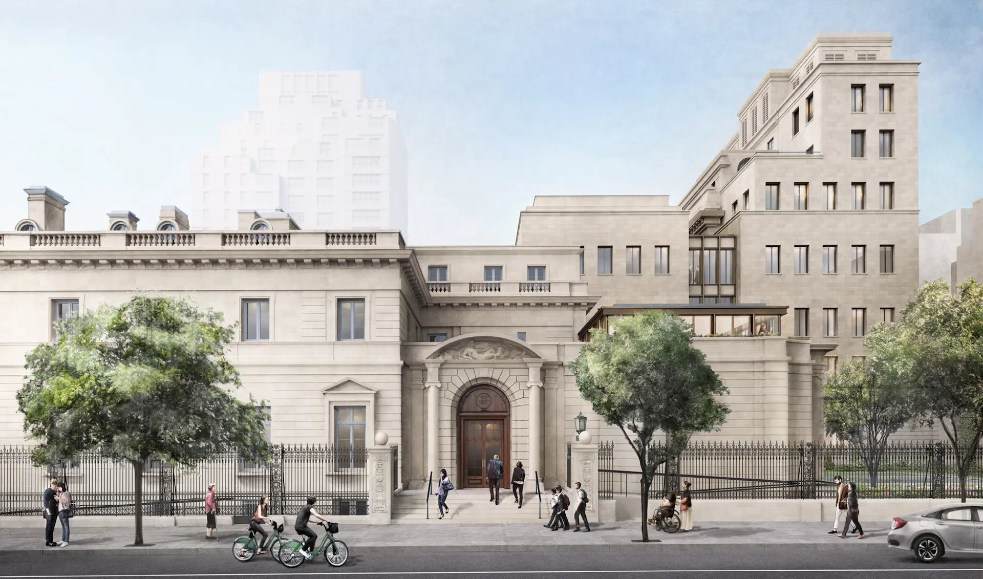 Projet de l'agrandissement de la Frick Collection depuis la 70e rue ; à droite, le jardin d'observation conçu par Russell Page. Courtesy Selldorf Architects