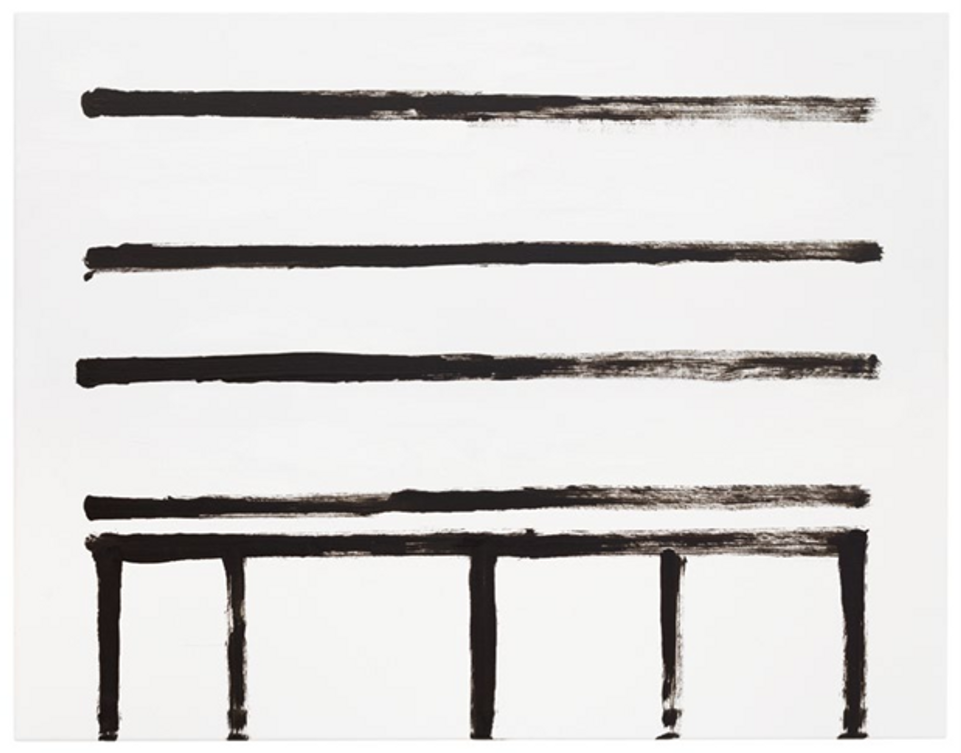 Mon travail en cours a commencé de façon inattendue par un tableau calligraphique que j’ai peint au sol avec un torchon de cuisine imbibé d’huile alimentaire et d’une très légère couche de couleur. Le résultat m’enchante, et je souhaite poursuivre dans cette voie. Je pense que le rythme, la répétition, le sentiment relèvent de l’expérience. C’est intime, cela a à faire avec la proximité de la fin. Lorsque je regarde une œuvre de jeunesse, j’y remarque souvent une composante lyrique, quelque chose de plus direct que ce que je fais à présent, où les choses sont mises beaucoup plus en retrait. Je suis toujours saisi par la poésie des petites choses. Le rythme n’est jamais très clair, il y a beaucoup de pauses. L’impuissance joue un rôle important. On aimerait peut-être être quelqu’un d’autre. Suis-je celui que je suis, ou suis-je un autre ? On a en son sein tellement d’âmes. Et cette multiplicité d’âmes nous agite, nous tourmente.