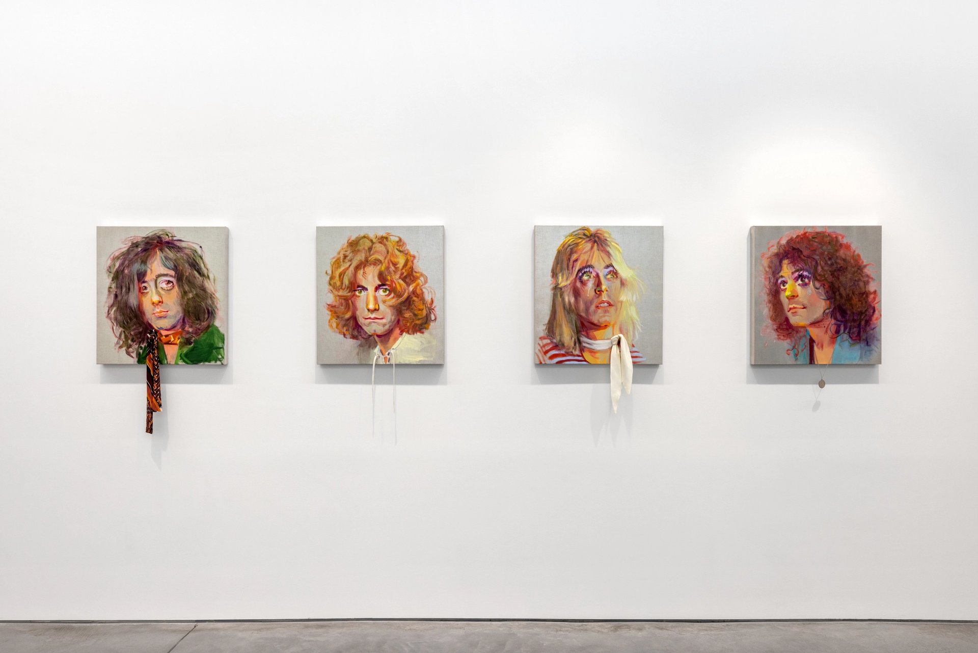 « Unisexe », un adjectif bien caractéristique des années 1970, signe le nouveau voyage en arrière de Nina Childress. Ce sont quelques dieux ou demi-dieux du rock (glam ou hard) et du disco que, fidèle à sa ligne, elle fixe d’une façon appliquée avec plus ou moins d’effets picturaux, et quelques marques d’irrespect (un vrai foulard ou un vrai médaillon ajouté au portrait). Nul ne se soucie de savoir ce qui l’a plus retenu chez tel ou tel (l’artiste ou l’œuvre), chacun reconnaîtra les siens. Ni célébration béate, ni raillerie cruelle, mais quelque chose de tendre et de légèrement pathétique.