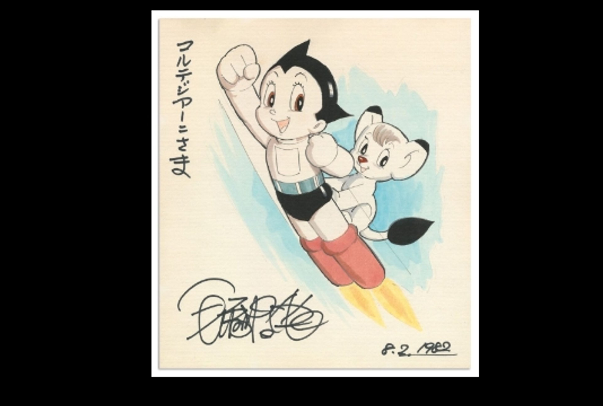 Osamu Tezuka, Astro Boy, 1982, encre de Chine et encres de couleurs sur Shikishi Board, signé et dédicacé. Courtesy Daniel Maghen Enchères