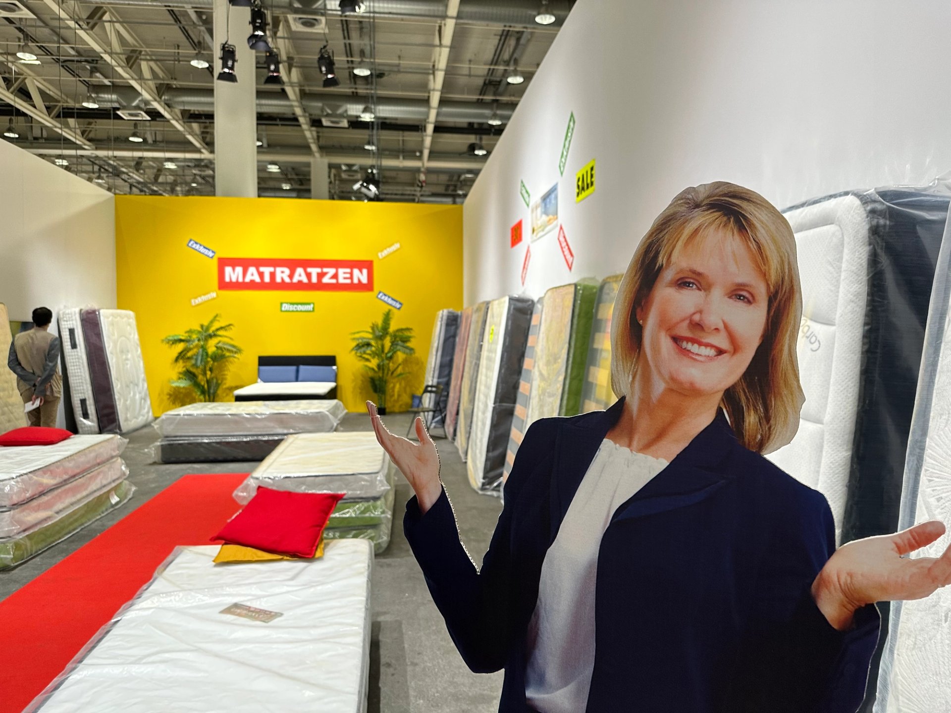 De la foire d’art au centre commercial il n’y a qu’un pas, semble affirmer l’artiste belge Guillaume Bijl avec son magasin de matelas plus vrai que nature. Il invite aussi après un épuisant tour de la foire à venir s’allonger quelques instants pour reprendre des forces. Et nous rappelle que pour succomber aux œuvres présentées dans le salon, un bon matelas de billets n’est pas inutile. Ici, il faudra quand même 250 000 dollars.