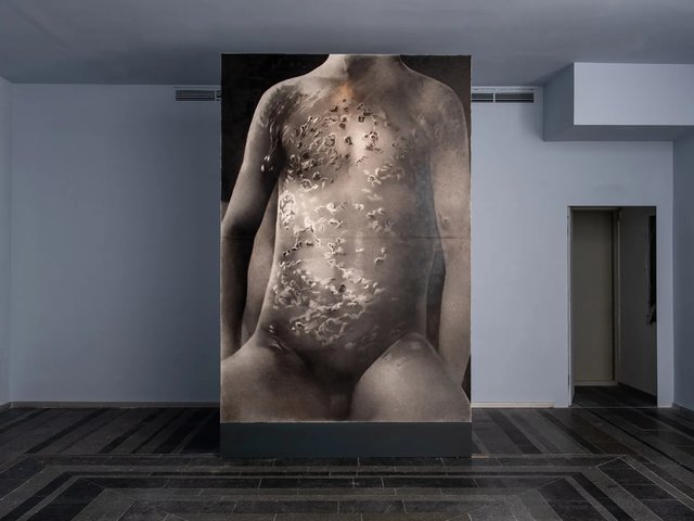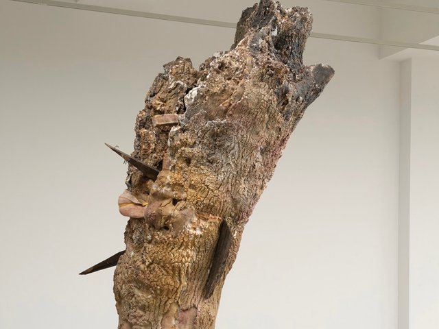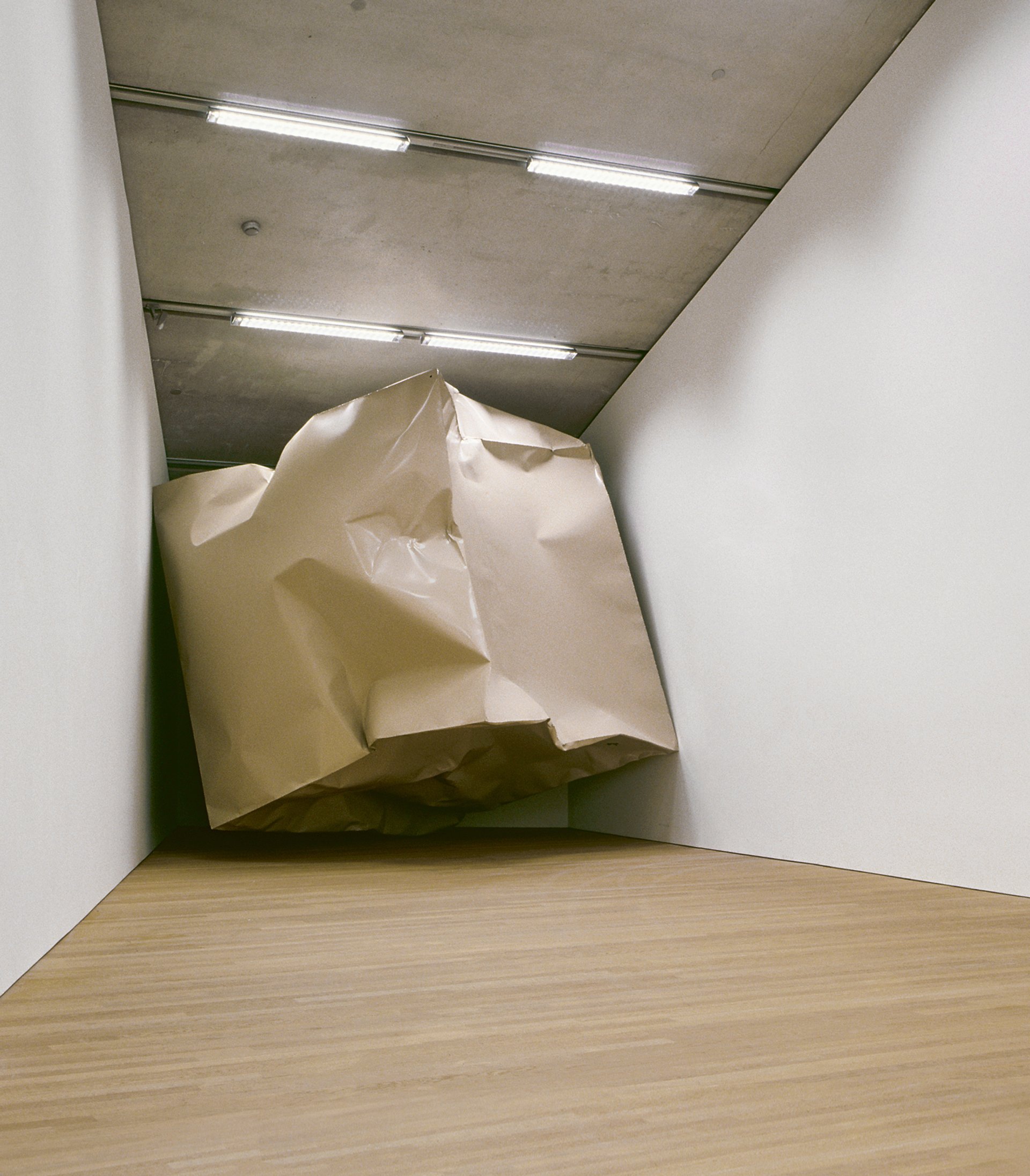 Monika Sosnowska, Sans titre, 2006, tôle d'acier et peinture émaillée, 283 x 238 x 301 cm. Fondation Emanuel Hoffmann, en dépôt à l’Öffentlichen Kunstsammlung Basel. Photo : Tom Bisig, Bâle. © Monika Sosnowska. Courtesy de l’artiste, Foksal Gallery Foundation, The Modern Institute, Galerie Gisela Capitain, Kurimanzutto, Hauser & Wirth