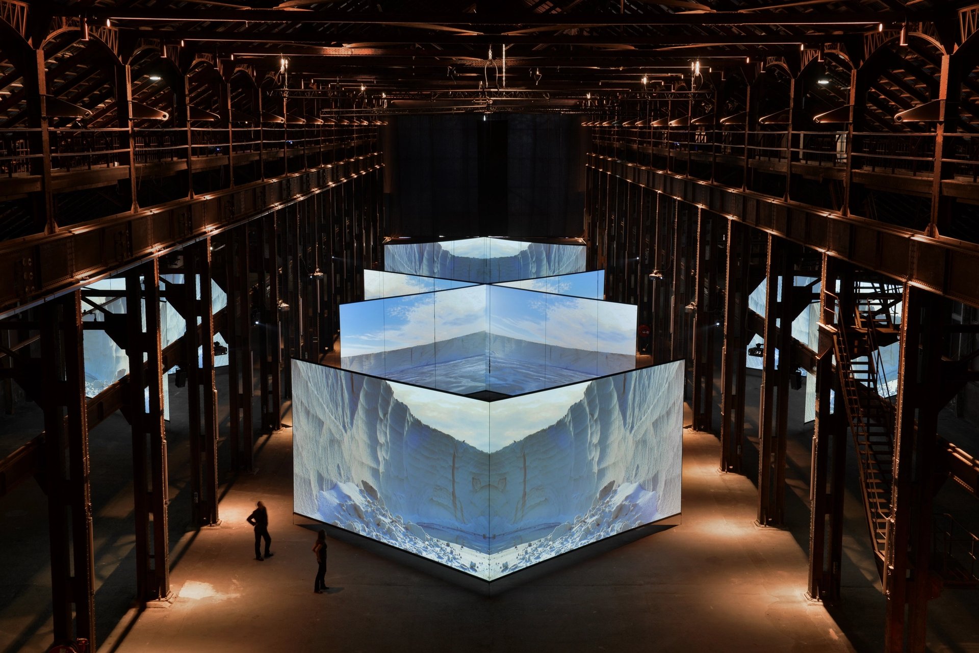 Altered Earth est probablement l’œuvre la plus importante que j’ai réalisée en France. Le contexte était étonnant car la Fondation LUMA n’existait pas encore en tant que bâtiment. L’œuvre est donc née d’une conversation avec le paysage, la Camargue, une zone humide assez surréaliste : le vent hurle au printemps, il y a des salines, des marais et un habitat naturel sauvage. Je me suis demandé : serait-il possible de créer une œuvre à partir de ce paysage ? Et j’ai commencé à réfléchir à la manière de l’aborder. Lorsque nous pensons au land art, nous imaginons généralement des œuvres physiques. Je me suis dit : et si je créais du land art à partir d’images en mouvement et de sons ? Et si je m’emparais de cette géographie de la Camargue pour la séparer en morceaux, constitutifs d’une grille, chacun de ces morceaux racontant sa propre histoire ? J’ai passé environ un an à filmer les quatre saisons. Chacune d’elles est devenue une île d’histoires différentes filmées dans un paysage plus large. Une fois le tournage terminé, j’ai créé une installation réunissant de nombreux écrans de cinéma et du son, qui ressemble à un origami géant. Cette installation en forme de labyrinthe a pris place dans l’immense espace sombre de l’ancien atelier ferroviaire d’Arles. Lorsque l’on y pénétrait, on avait l’impression de se trouver au sein d’un kaléidoscope paysager, constitué d’éléments du micro au macro, du vent soufflant dans les roseaux à l’océan violent de la nuit. Je voulais distiller le paysage, créer une sorte d’architecture liquide, un espace expérientiel à parcourir. L’œuvre n’est pas un documentaire, plutôt une sorte d’interprétation fictive du paysage.