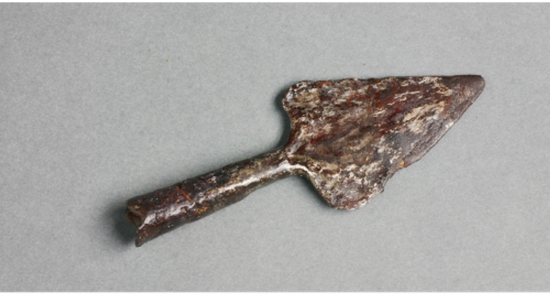 Pointe de flèche du mobilier archéologique de la résidence seigneuriale de Rubercy, Normandie, 2de moitié du XIIe siècle, fer, musée de Normandie, château de Caen. © Ville de Caen
