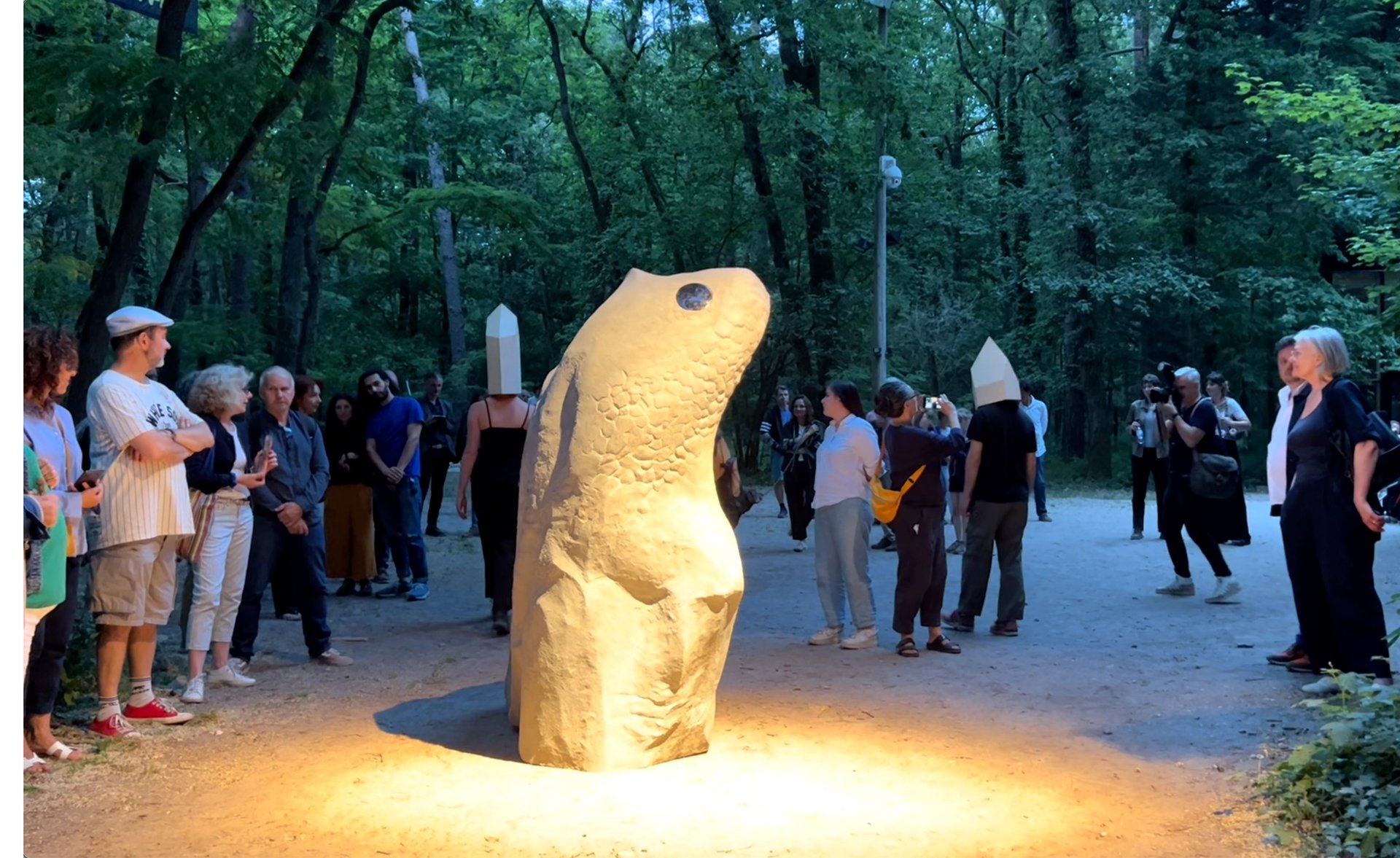 L’espace secret de la forêt, d’un côté, celui de l’immensité de la dune Dewulf en bordure de mer du Nord, de l’autre : Virginie Yassef explore dans ses dernières œuvres des univers décalés, presque oubliés malgré leur proximité. Le 10 juin 2023, à la tombée de la nuit, elle a mis en scène autour du monument construit par Jean Tinguely et ses amis un spectacle faisant intervenir, à côté de musiciens et de performers, un rocher et un cheval. L’artiste recourt souvent dans ses œuvres (performances, vidéos, installations, sculptures, photographies) à la figure animale. L’arbre est aussi chez elle un motif privilégié. Mais, dans son travail, le moindre fragment de nature revêt une vie humaine. Un rocher « à écailles », copié sur ceux de la forêt de Fontainebleau, peut se mettre à parler ; il peut se déplacer ; il est une présence qui respire parmi les spectateurs. Comme les enfants refont le monde en empilant des cubes en plastique, Virginie Yassef invente des scénarios avec des morceaux de bois. Elle ouvre les portes du rêve en changeant l’eau en vapeur et enchante la nuit en faisant courir un cheval au son d’un somptueux final musical.