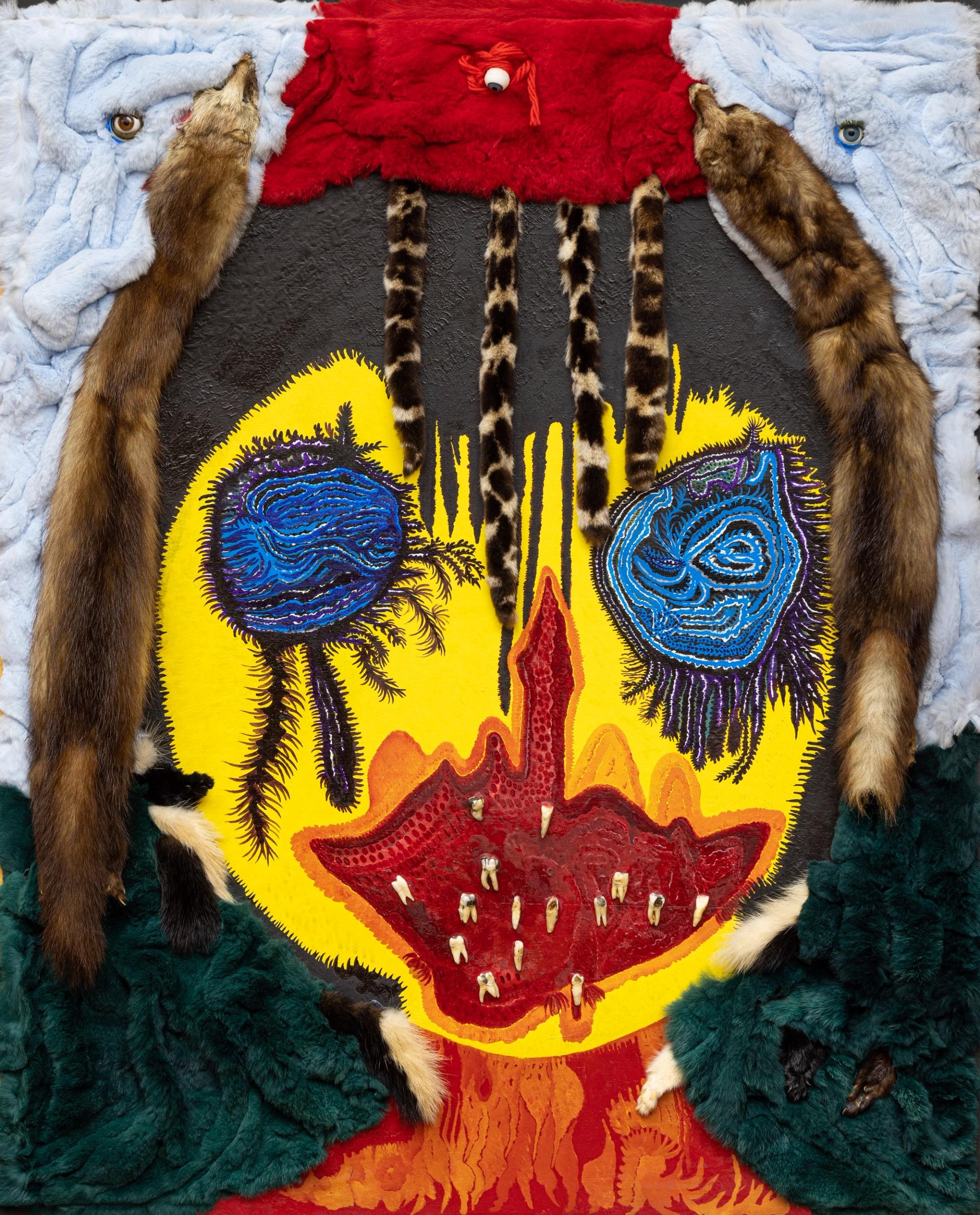 Ursula, That’s me. So what?, 1995 WV (95/003), huile sur toile, assemblage de fourrure et de plumes, 147 x 98 cm. Collection northern Germany. © Museum Ludwig, Cologne. Reproduction : Helge Mundt