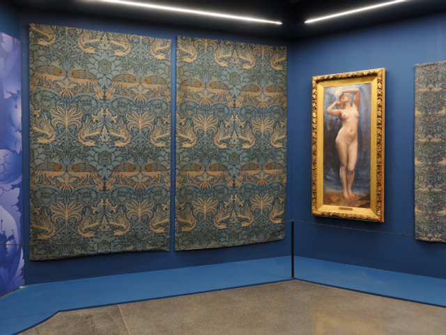 Éclairante par son souci pédagogique de mettre la tradition du « figuratif narratif » dans son contexte historique, l’exposition rappelle combien Tolkien fut l’héritier d’un courant artistique incarné par les mouvements picturaux anglais du milieu du XIXe siècle : la confrérie préraphaélite et le mouvement Arts & Crafts. Précurseurs de la peinture « d’après nature », ces artistes voulaient retrouver la beauté originelle de la nature (celle de l’époque médiévale, d’avant Raphaël) qu’ils jugeaient altérée par la peinture classique de la Renaissance. Tolkien fut en particulier fasciné par l’œuvre de William Morris (1834-1896), dans laquelle la nature règne souverainement, avant que n’arrivent les machines qui saccagèrent le paysage.