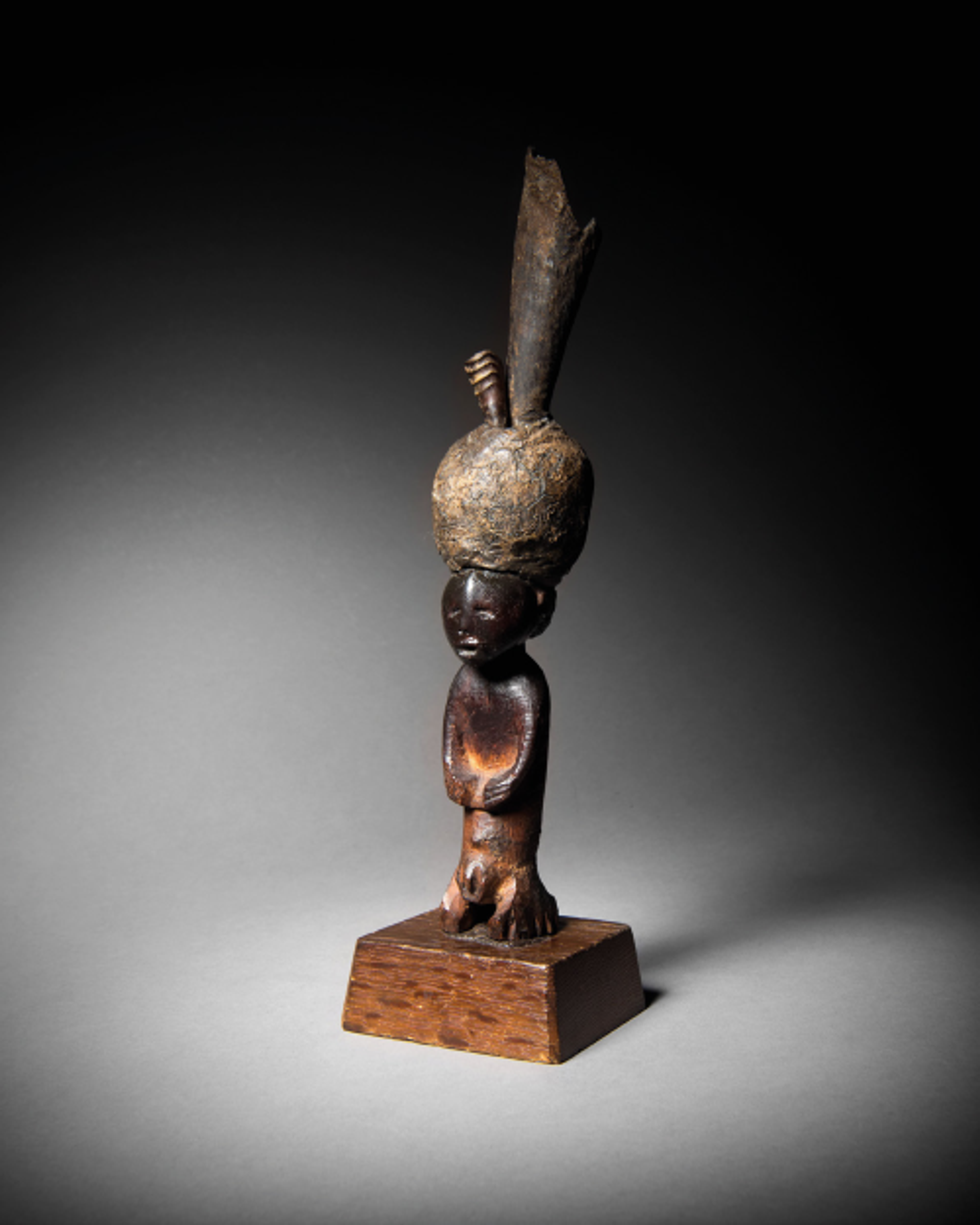 Mais au-delà de ces heureuses initiatives, on retrouve les fondamentaux de ce Salon à nul autre pareil. L’Afrique se taille toujours la part du lion et demeure « l’ADN du Parcours », selon les mots mêmes d’Yves-Bernard Debie. Parmi les pièces au pedigree et aux qualités esthétiques irréprochables, on remarque chez Bernard de Grunne une effigie du peuple Tellem (Mali), issue de la collection Charles Ratton, dont la surface grumeleuse atteste de pratiques rituelles ancestrales. Abla et Alain Lecomte présentent, quant à eux, un florilège de masques ; entre autres un exemplaire Dan (Côte d’Ivoire) provenant d’une ancienne collection belge et datée d’entre la fin du XIXe et le début du XXe siècle. « Le haut du front est orné de petites cornes sculptées d’antilope naine et la face recouverte de patines sacrificielles. La bouche est remarquable par sa dimension et son expression », souligne avec enthousiasme Alain Lecomte. Enfin, comment ne pas être subjugué par la délicatesse et l’intériorité d’un charme Luba (République démocratique du Congo), dont les cornes d’antilopes et la charge rituelle accentuent davantage encore le mystère. Dotée d’un socle signé du sculpteur et ébéniste japonais Kichizô Inagaki, cette pièce d’exception est passée entre les mains du médecin Stephen Chauvet et de Maurice Ratton, avant d’« atterrir » chez son fils Philippe Ratton, le neveu de Charles Ratton…