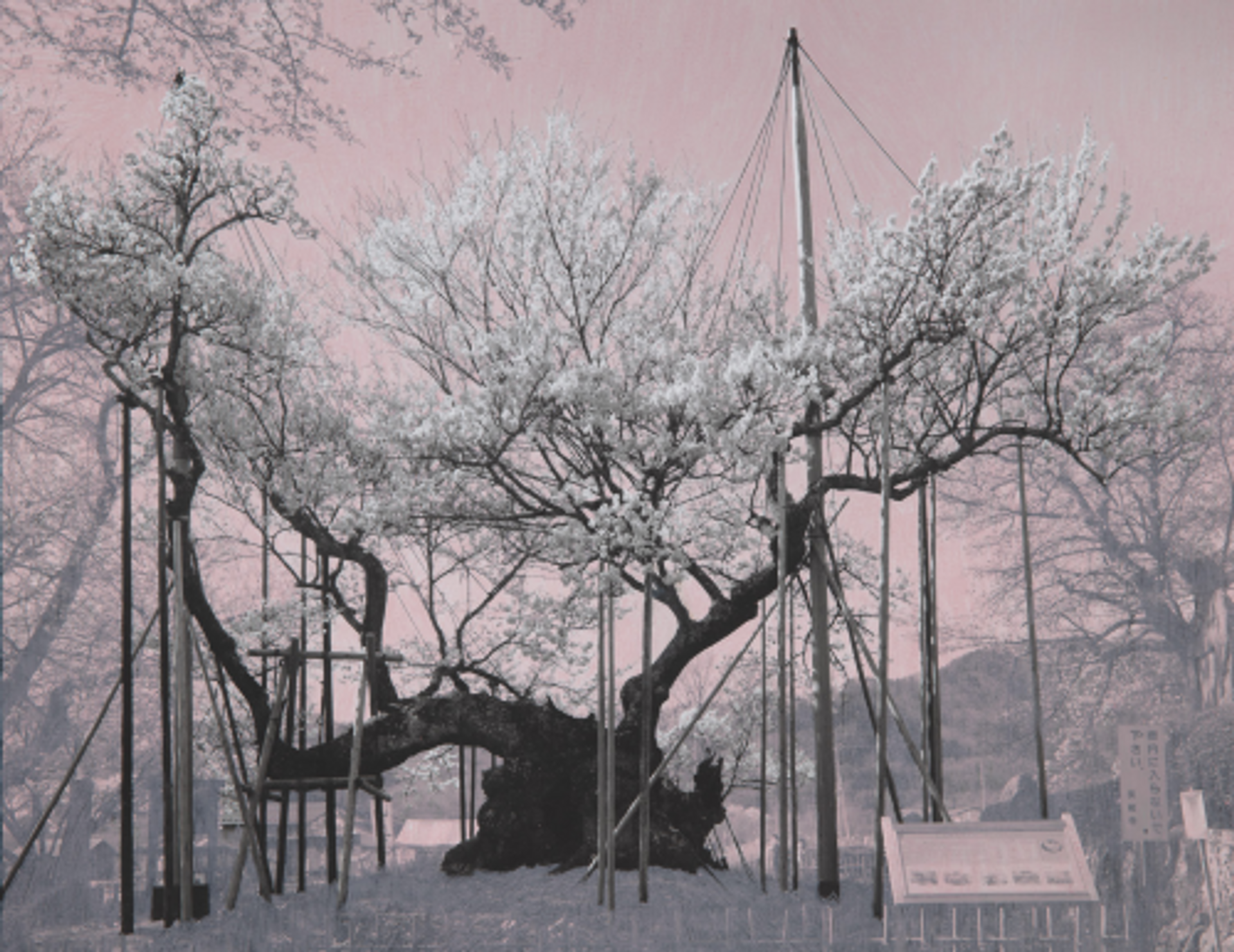 Tacita Dean, Small Sakura Study (Jindai I), 2022, crayon de couleur sur tirage sur papier gélatino-argentique Foma mat marouflé sur papier.