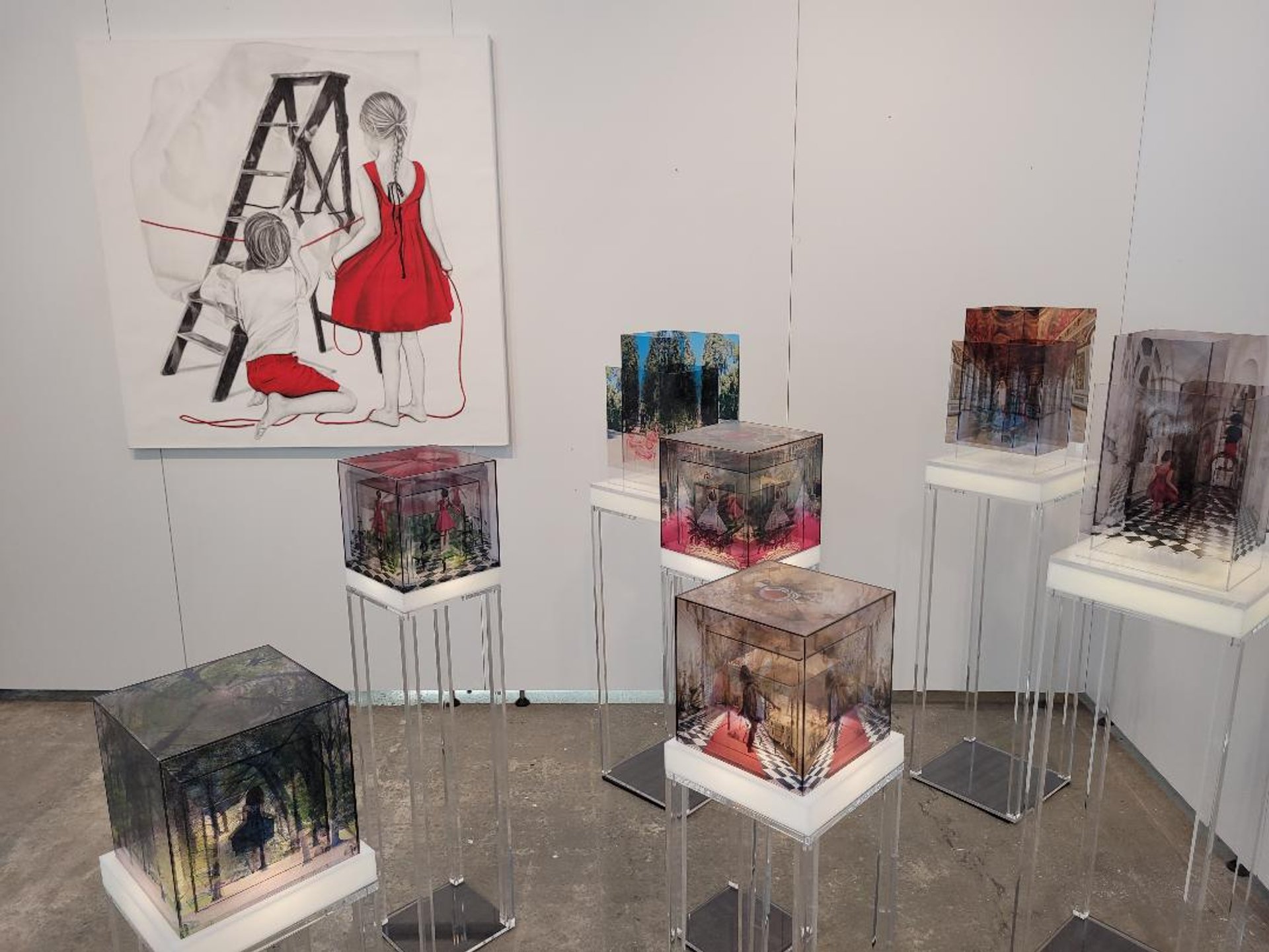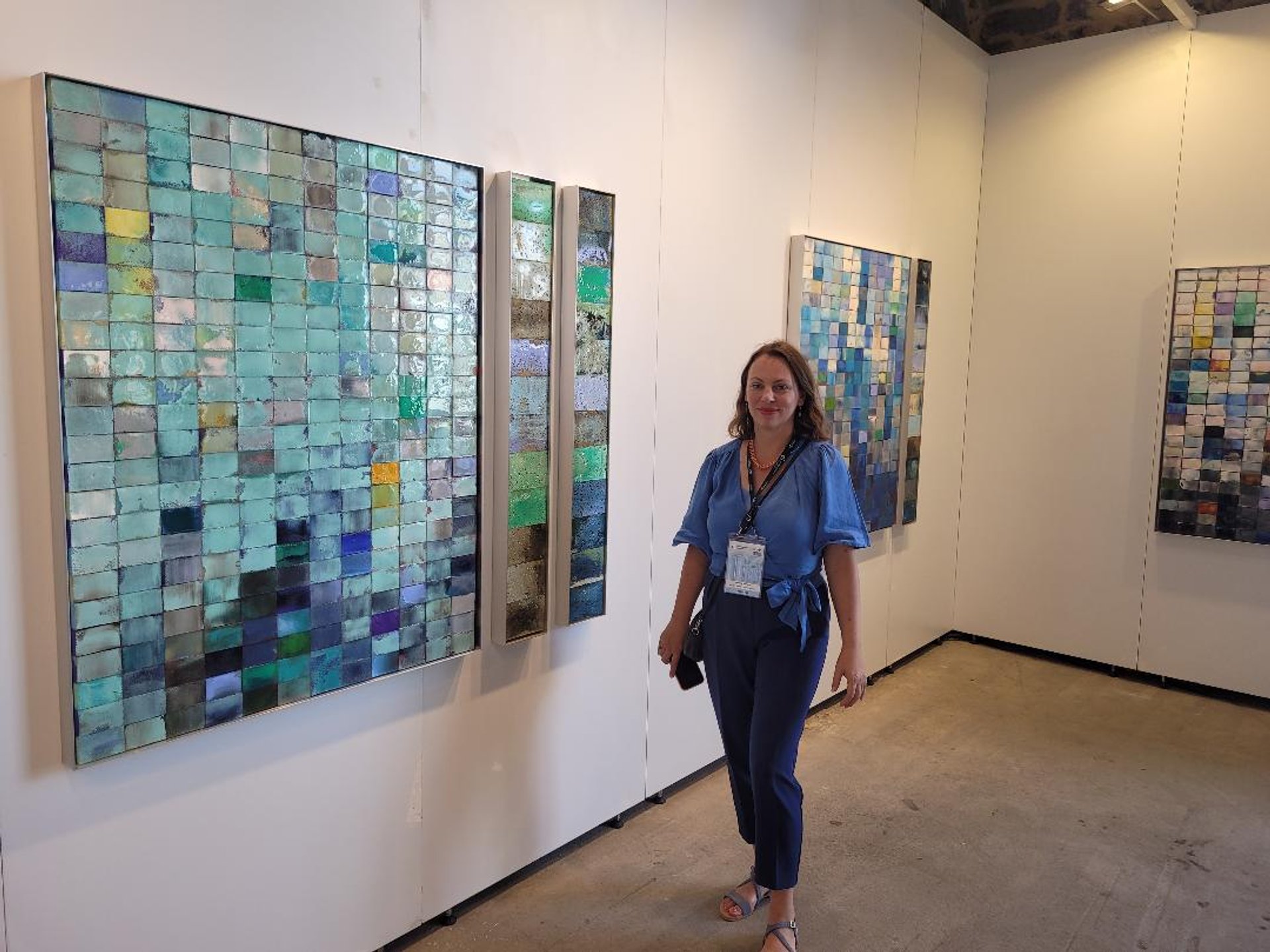 « C’est notre premier pas sur une foire en dehors de l’Allemagne , nous voulions tester ce marché nouveau pour nous », confie Yvonne Hohner, directrice de la galerie éponyme (Karlruhe) et qui montre entre autres les très belles éponges peintes comme des mosaïques de Fahar Al-Salih. Parmi les galeries non turques, IBI Art Gallery (Johannesburg) montre une œuvre de petite taille en bronze de Cathy Abraham, ballon noué évoquant la question du manque de souffle… L’œuvre a retenu l’attention de visiteurs….sud-coréens ! Parmi les stands les plus singuliers figurent celui de Mark Hachem, installé entre autres à Paris, et qui présente les boites d’images animées autour de la danse de Giselle Borras (à partir de 4 500 euros), un thème repris dans le très joli travail de l’artiste Michelangelo Bastiani qui fait danser dans des verres ou y faire surgir des orages.