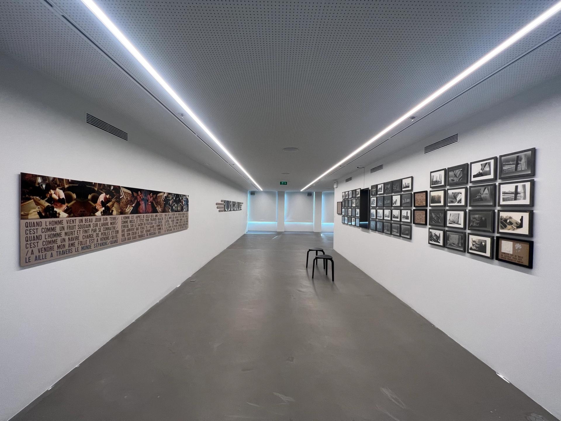 Vue de l’exposition « Nil Yalter : C’est un dur métier que l’exil », avec la Galerie 1 Mira Madrid, L’Atlas, 2023. Photo : Rebecca Fanuele