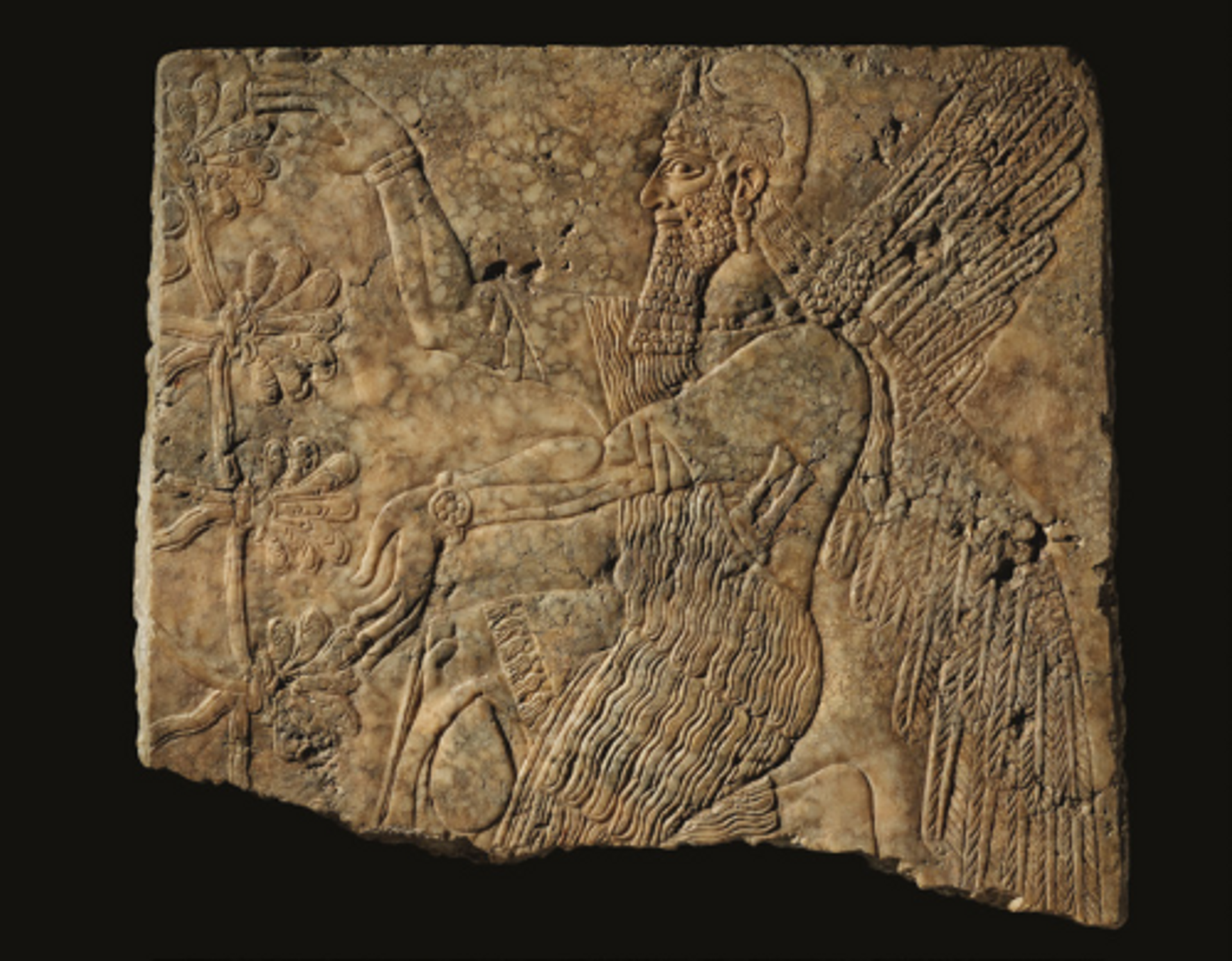 Bas-relief assyrien représentant la figure du génie ailé Apkallu, règne d’Assurnasirpal II, 883-859 av. notre ère, gypse, est. 3-4,7 millions d’euros.
