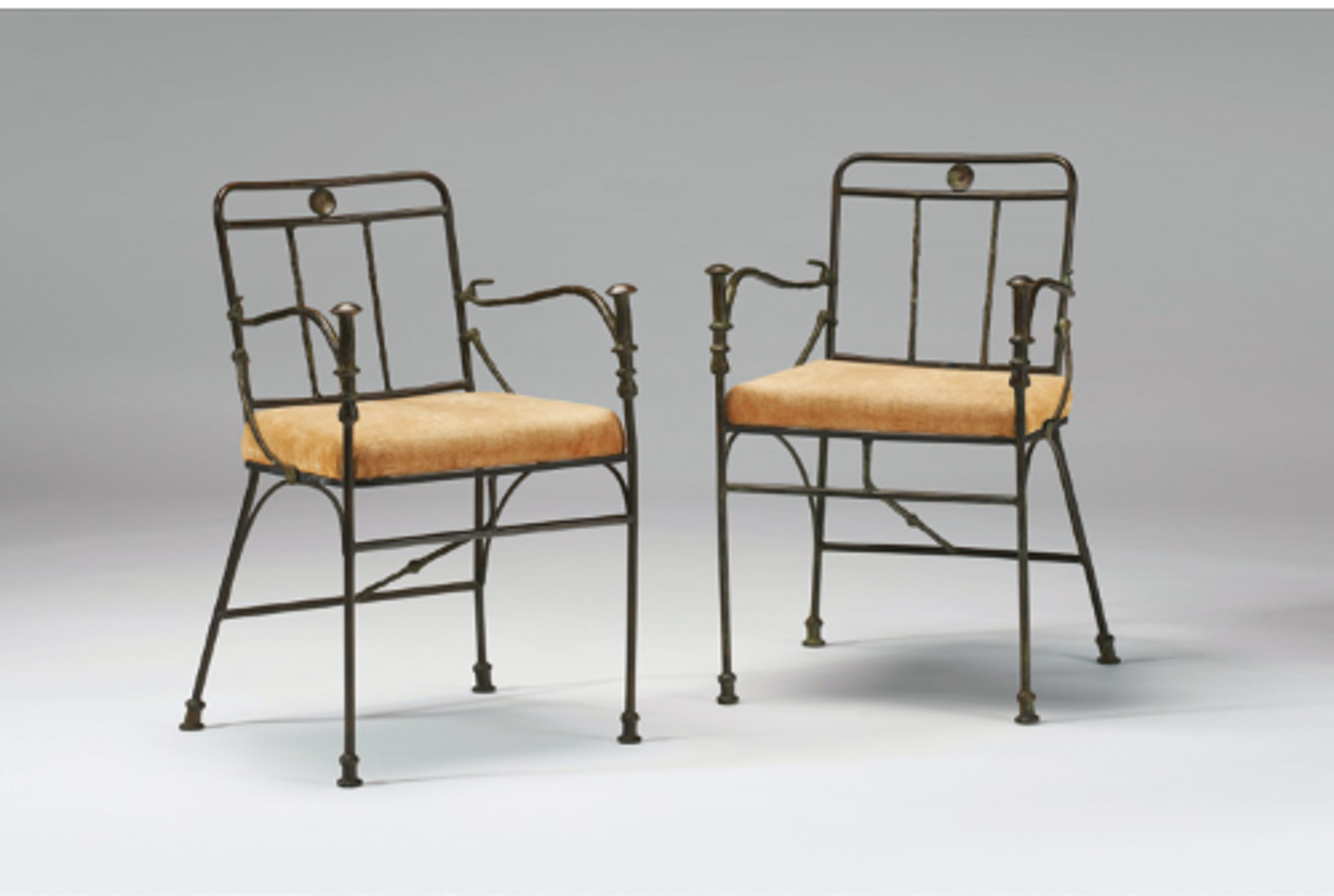 Diego Giacometti, Paire de fauteuils pommeaux de canne, vers 1969, bronze à patine brune et acier, est. 345000-575000 euros.