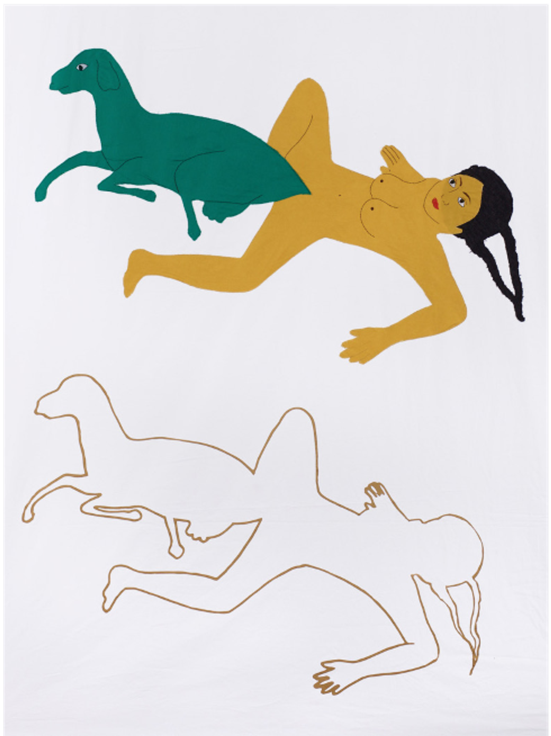 Kubra KHADEMI, The birth giving #01, 2021, Technique mixte - tissus appliqués et sérigraphie 200 x 150 cm, Pièce unique, ©Bertrand Hugues, Kubra Khademie et GEM