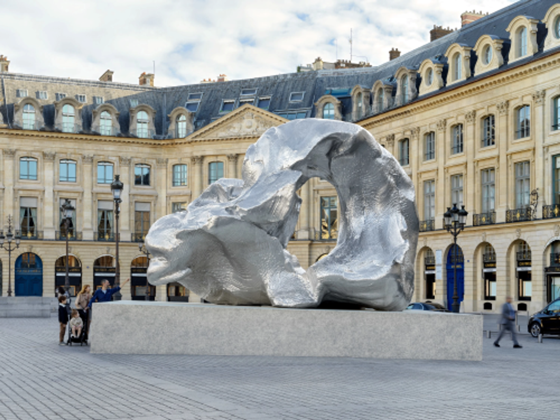 Dix œuvres de cette série Big Clays ont déjà été montrées dans le monde, de Florence à New York. Celle intitulée L’Arc (2016) se distingue avec celle-ci par son processus de fraisage qui lui confère une finition plus travaillée. Malheureusement, il est impossible ici d’approcher la pièce de près : elle a été placée en hauteur sur un énorme podium « pour des raisons techniques », précise l’artiste, afin d’empêcher que le public ne soit tenté de l’escalader. Impossible également à deux personnes de se regarder l’une l’autre à travers, ce qui pourtant semblait être l’une des possibilités initiales. D’autres œuvres monumentales installées jadis place Vendôme, dont celle d’Alexander Calder, étaient pourtant au même niveau que les spectateurs...