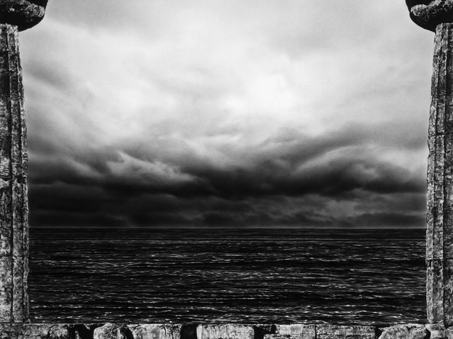 Robert Longo a créé le dessin d’un horizon cerné de colonnes classiques. «En créant mon œuvre, j’ai fait référence à un temple dorique que [Rothko] a visité à Paestum. À cette occasion, il avait déclaré: “J’ai peint des temples grecs toute ma vie sans le savoir”. Pour moi, l’œuvre de Rothko fait toujours référence au paysage et soumet l’idée que la ligne d’horizon est à l’origine de l’abstraction ». « Son rejet du réalisme a été renforcé par les destructions et les horreurs de la Seconde Guerre mondiale et par sa confrontation à l’antisémitisme. Mon travail est une façon humble d’honorer la dignité et le drame des fenêtres et des portails que Rothko a imaginés », ajoute-t-il.