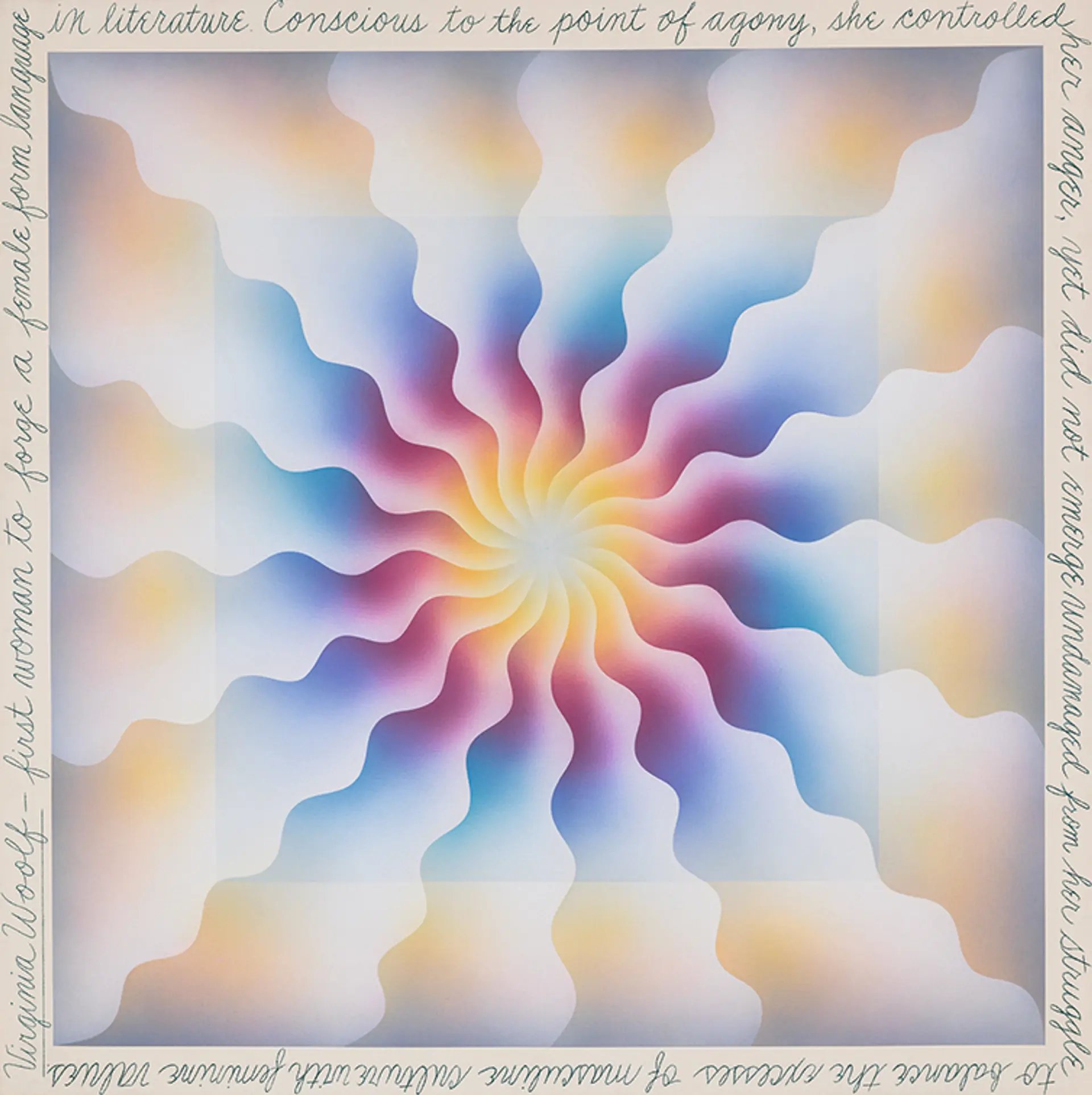 Judy Chicago, Virginia Woolf (1973), l'un des trois tableaux de The Reincarnation Triptych. Chaque peinture porte le nom d'une femme ayant inspiré l'artiste. © l'artiste/ARS, New York ; courtesy de l'artiste