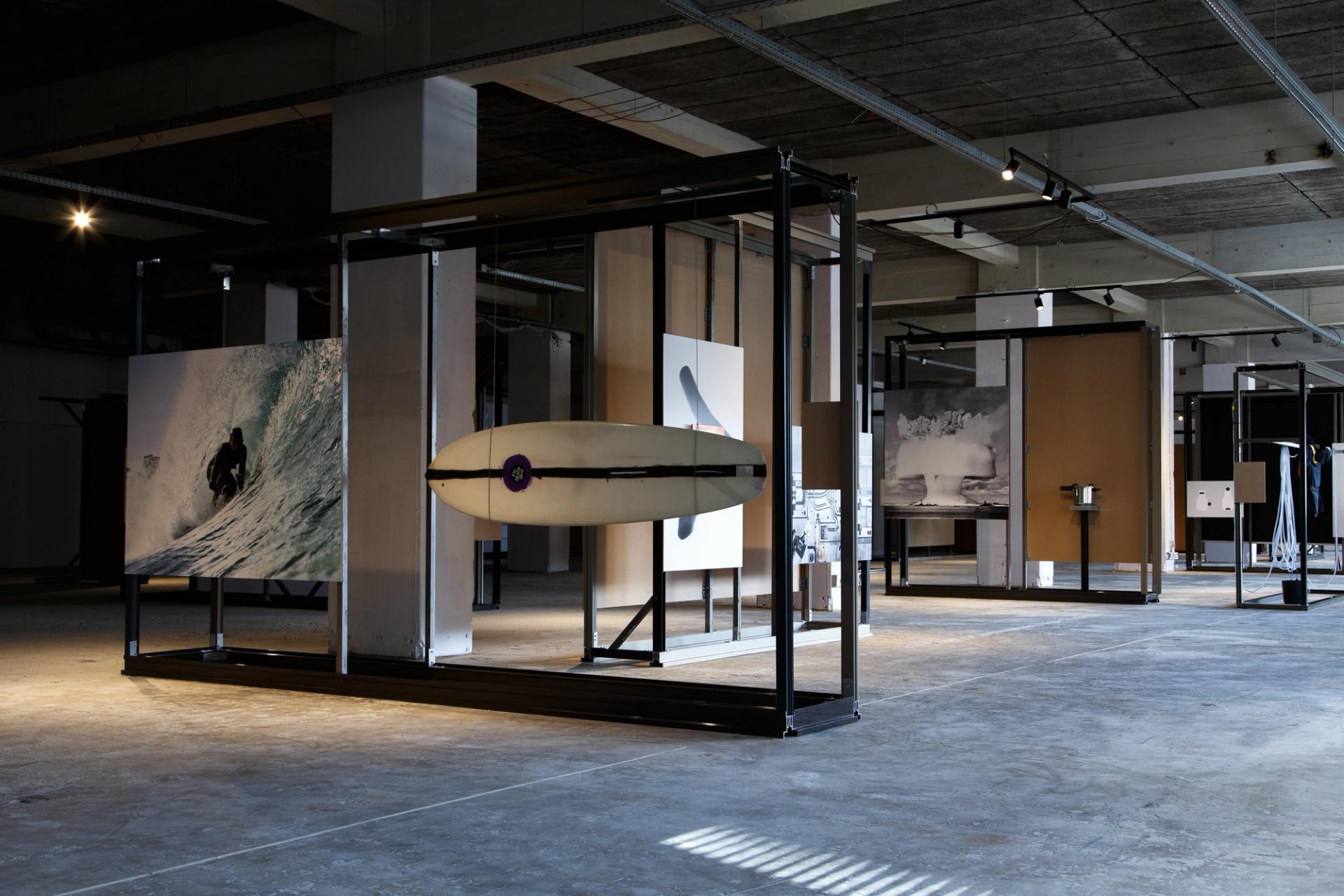 Toujours dans le même bâtiment, mais à un étage inférieur, la présentation « Ligações » (« Connexions ») du designer portugais Miguel Vieira Baptista consiste en une sélection d’objets, industriels ou manufacturés – un surf profilé, une cocotte-minute, un pneu et le travail sur les sculptures pour éviter l’aquaplaning… –, fatalement liés à l’eau et montrés selon un dispositif précis : un immense tirage photographique, une vidéo et l’objet lui-même. En fond, tourne en boucle un extrait du génial film de Frank Perry The Swimmer (Le Plongeon, 1968), l’histoire d’un homme qui rentre chez lui depuis une banlieue lointaine en nageant de piscine en piscine comme si elles étaient toutes connectées entre elles, telle une rivière…