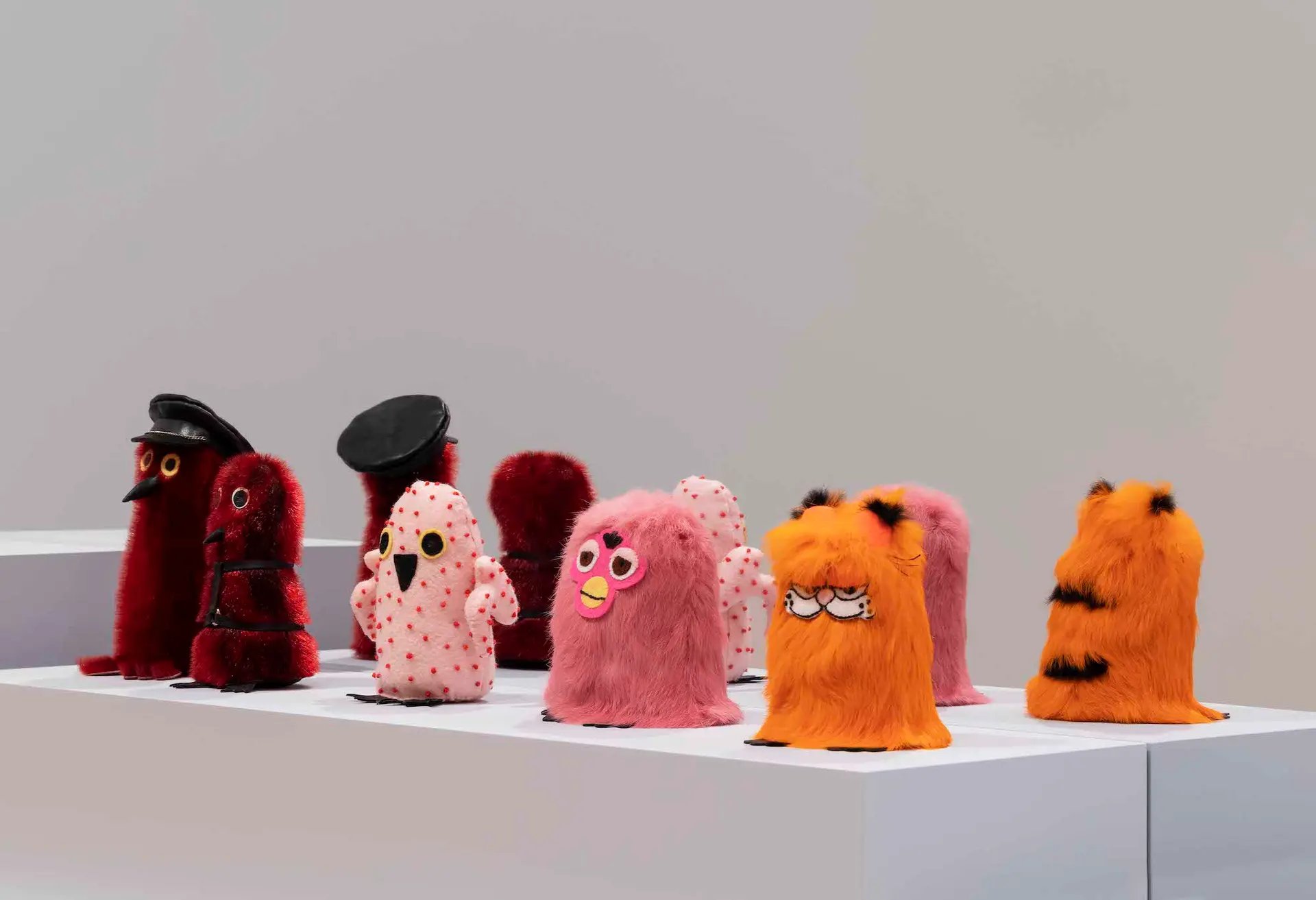Kablusiak, Red Ookpik with Hat, Red Ookpik, Plucked Ookpik, Furby Ookpik and Garfield Ookpik, 2021-2023. Collection de Marnie Schreiber ; Collection de Frank Griggs et Jeremy Laing. Courtesy de l'artiste et Norberg Hall, Calgary. © Kablusiak. Photo : National Gallery of Canada, Ottawa