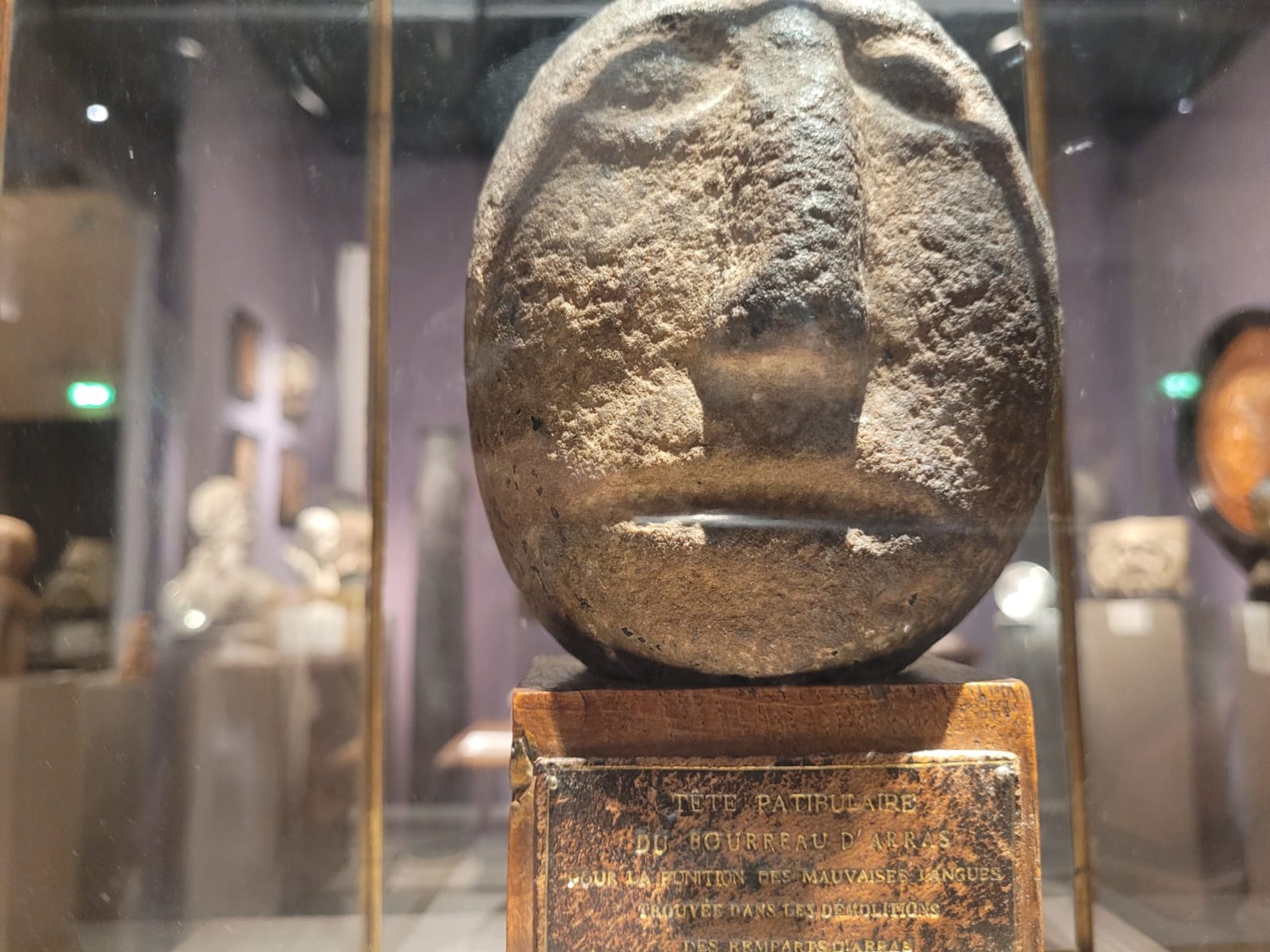 Pierre de Justice, dite « Tête patibulaire du bourreau d’Arras », grès sculpté, XVe siècle. Photo A.C.